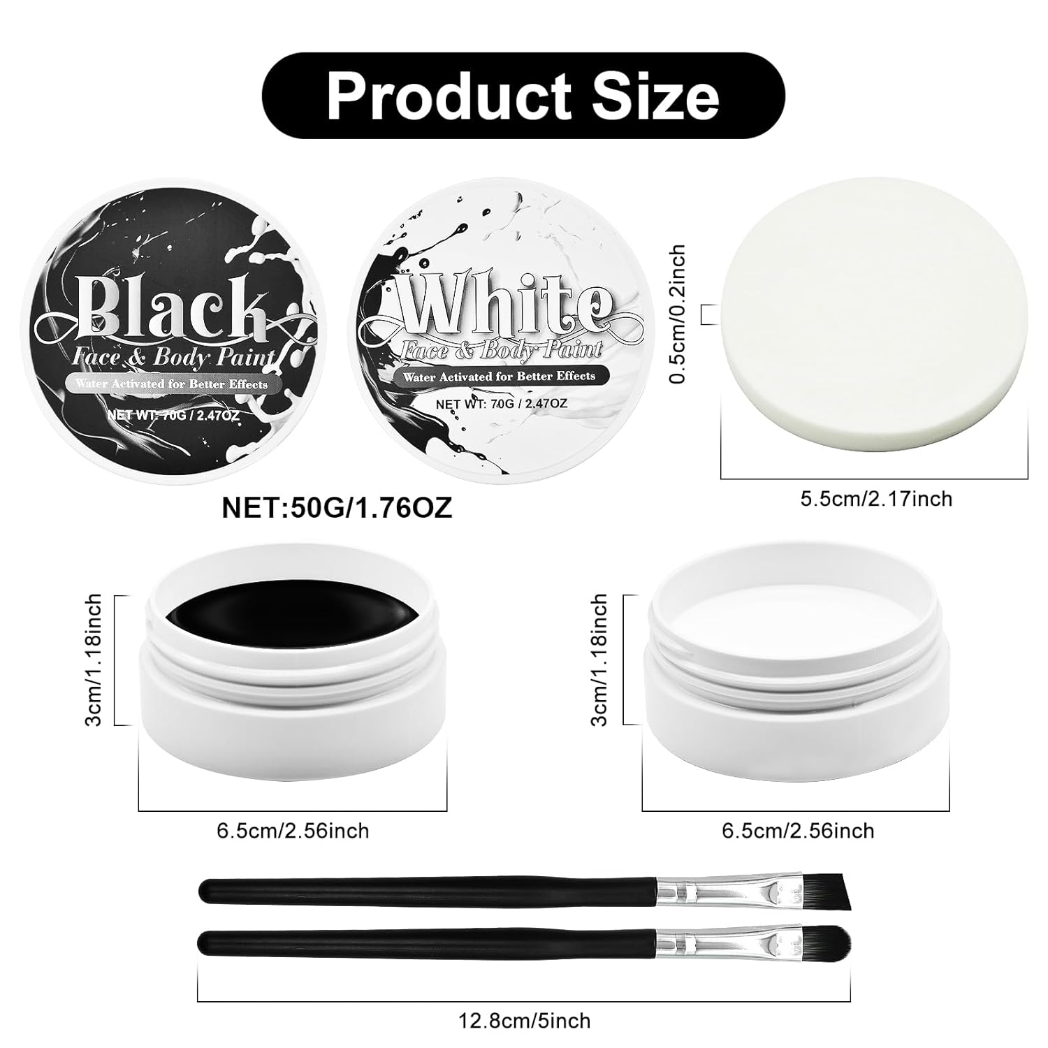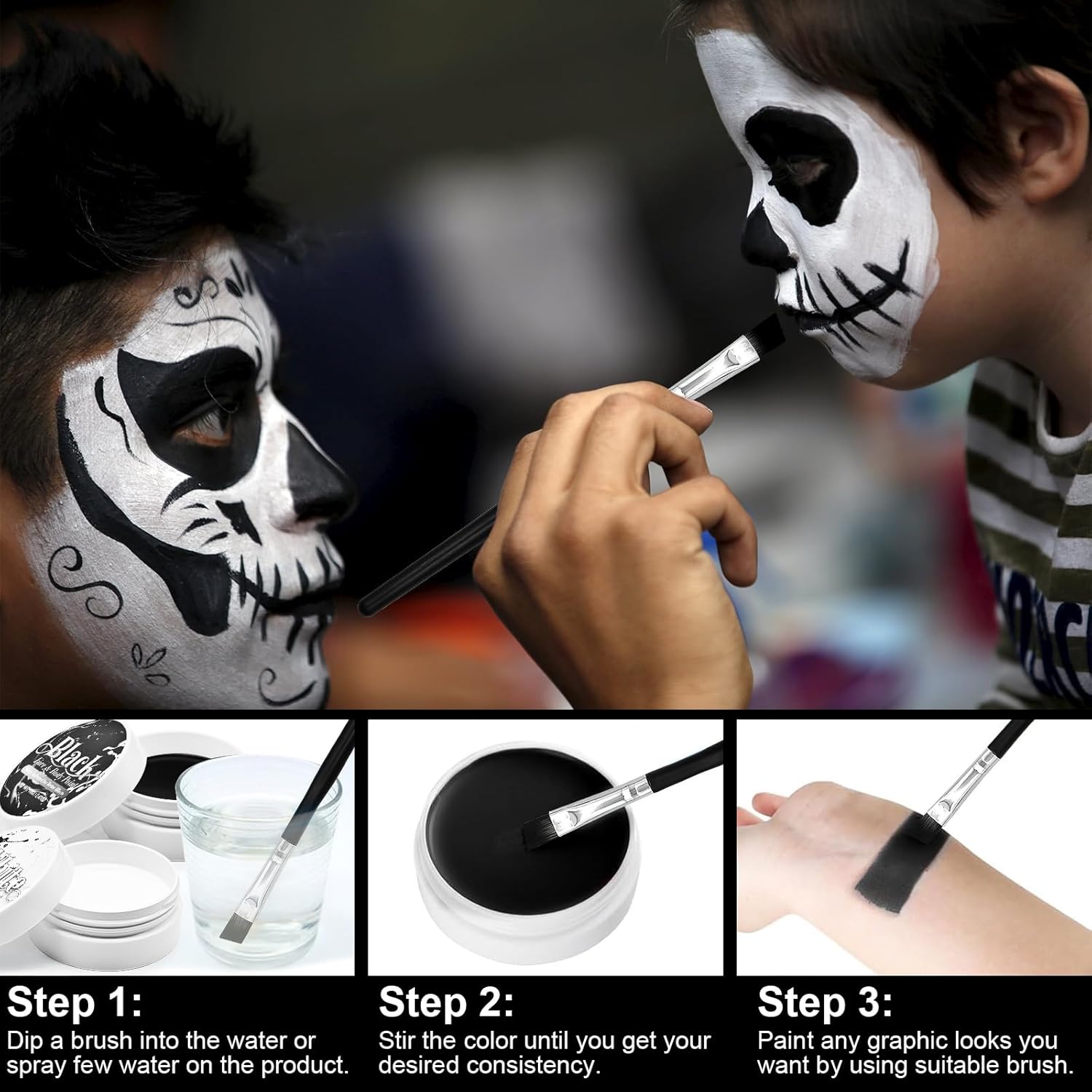 Black And White Face Paint Set - 2.47 Oz Halloween Face Body Paint Skeleton Ghost Skull Cosplay Costume Professional Sfx Corpse Special Effects Makeup Kit For Adults Kids Full Coverage Skin Paints