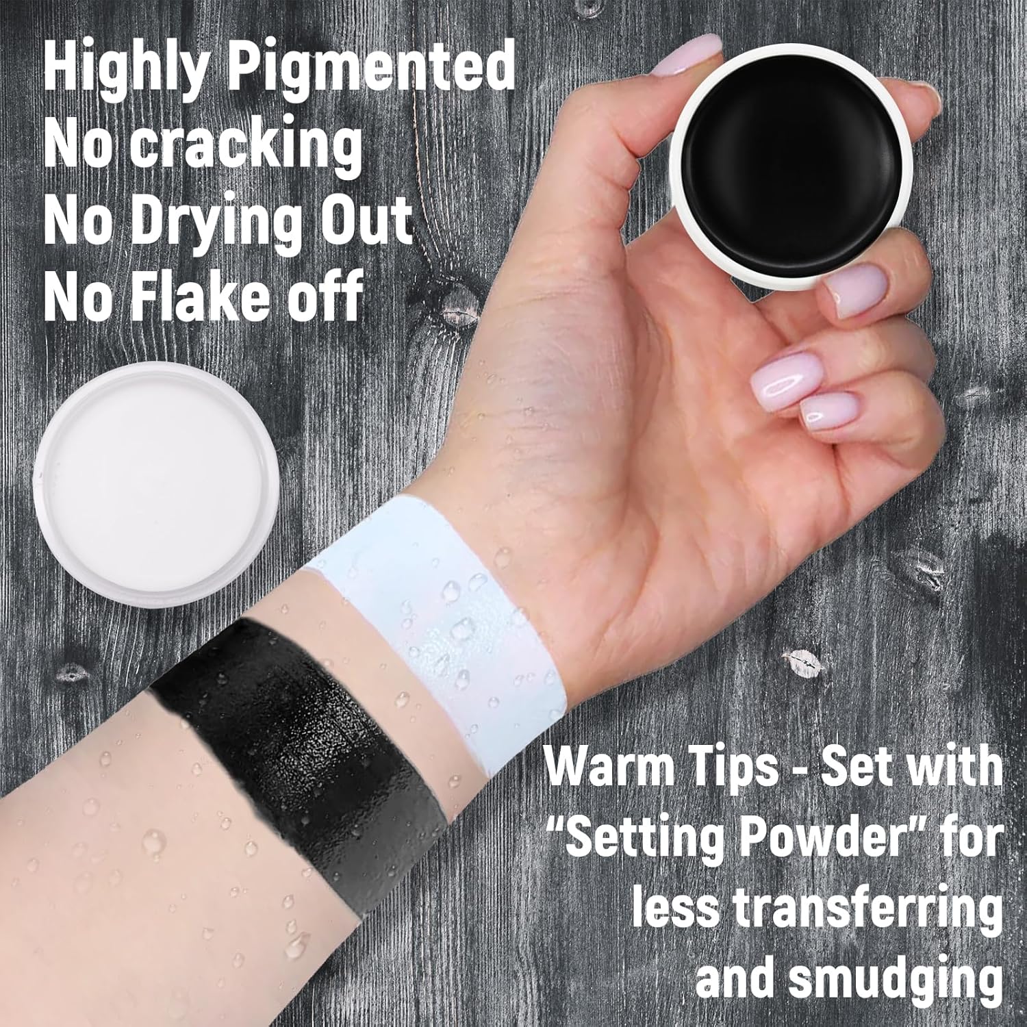 Black And White Face Paint Set - 2.5 Oz Halloween Face Body Paint Skeleton Ghost Skull Cosplay Costume Professional Sfx Corpse Special Effects Makeup Kit For Adults Kids Full Coverage Skin Paints