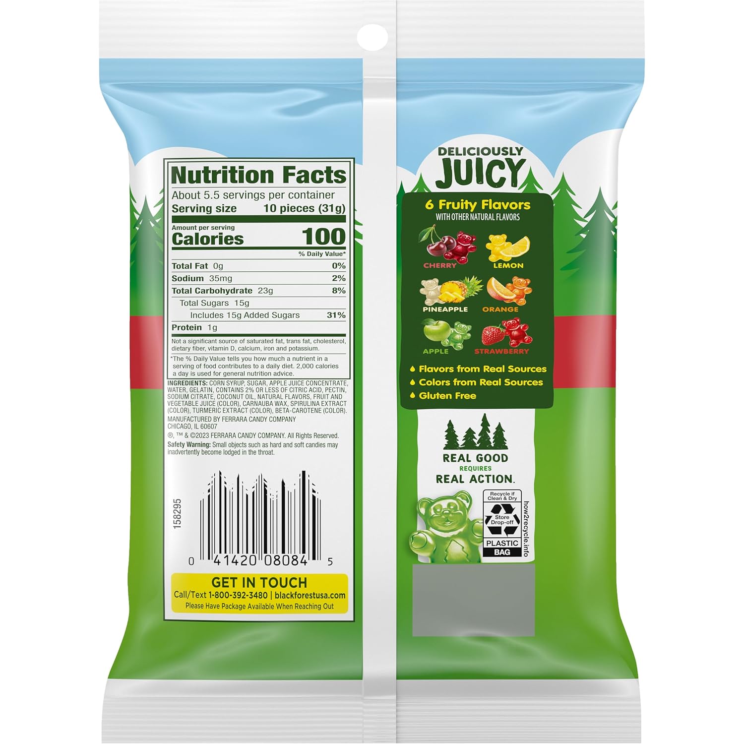 Black Forest Gummy Bears Are The Perfect Treat Or Snack To Satisfy Your Cravings. This 6 Oz Ounce Bag Of Gummy Bears Comes In 6 Deliciously Juicy Flavors: Cherry, Lemon, Pineapple, Orange, Apple And Strawberry. Black Forest Gummy Bears Are Made With Flavors And Colors From Real Sources For You To Enjoy. These Soft And Juicy Gummy Bears Are Great To Keep On Hand In The Pantry For Everything From On-The-Go Snacking To A Sweet Treat Just For You. Crafted With Care, Our Gummy Bears Are Love At First Bite. Comes In A Pack Of 8