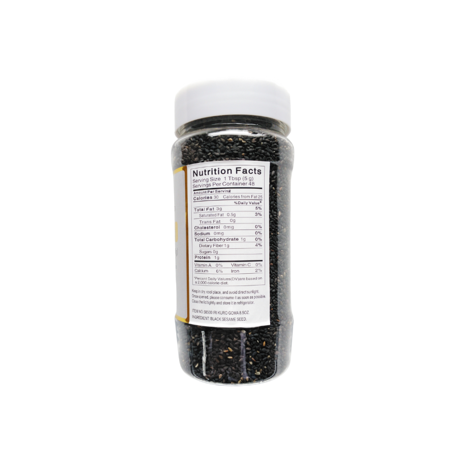 Description: ?Black sesame seed bottle 8.5oz Ingredients: Sesame seed Shelf life: 12 months. Description:?Black sesame seed bottle 8.5ozIngredients:Sesame seedShelf life:12 months