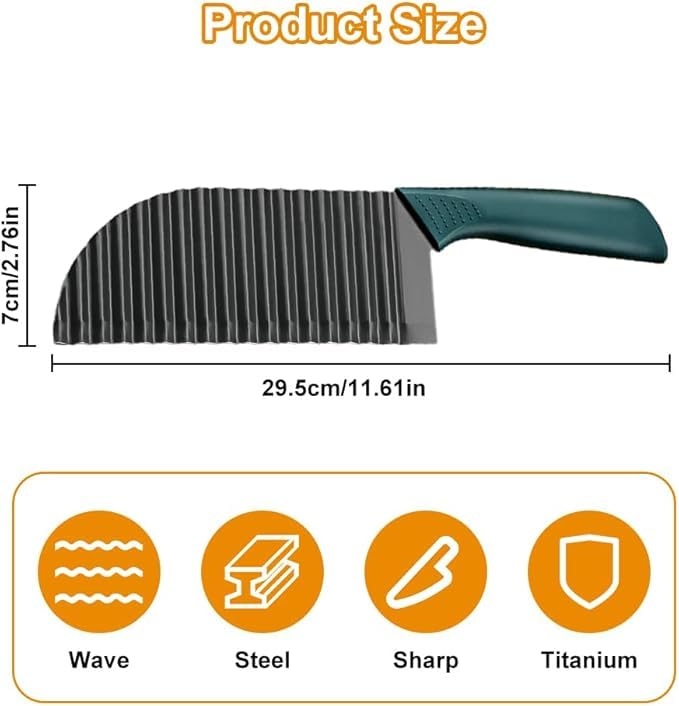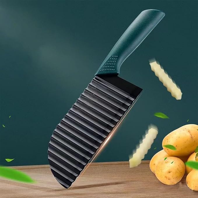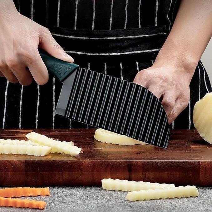 Black Wavy Fries Cut Knife - Steel Crinkle Blade for Perfect French Fries, Chips, Fruits and Veggie Slicing(Medium)