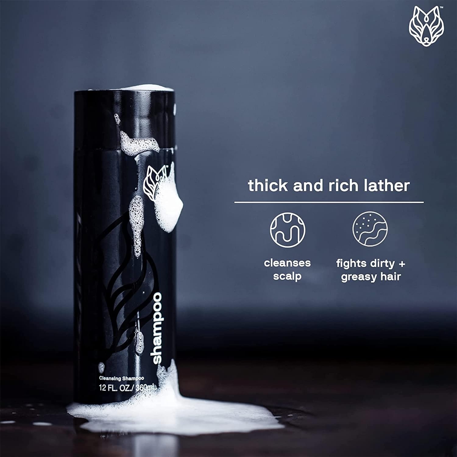 Good Hair Starts Here: Black Wolf Everyday Shampoo is a total game changer. Our unique formula has been designed to effectively cleanse your scalp and fight dirty and greasy hair. And with our amazing new bourbon & tobacco fragrance, your shower will never be the same. Each bottle contains 12 fl ozKeeps Hair Hydrated and Healthy: Everyday Shampoo is formulated to create easy-to-brush, frizz-free, and shiny hair. Our ingredients moisturize, strengthen, hydrate, and repair your strandsGentle Enough for Everyday Use: This shampoo is formulated to be used as often as needed without drying out your scalp or damaging your hairThick & Rich Lather: Our shampoo is designed to create a rich, foaming lather that removes dirt and unwanted oils to leave your hair feeling clean and healthyExtra Effective Personal Care for Guys: At Black Wolf, we’re reinventing the men’s grooming category, one product at a time. We provide extra effective personal care for guys—without the extra. We use simple formulas and high-quality ingredients to help you look and feel your best. And it’s reasonably priced, meaning that any guy can be a Black Wolf GuyBlack Wolf - Everyday Men’s Shampoo, 12 Fl Oz - Charcoal Powder Cleanses Scalp and Fights Dirty & Greasy Hair - Thick and Rich Lather - For All Hair Types