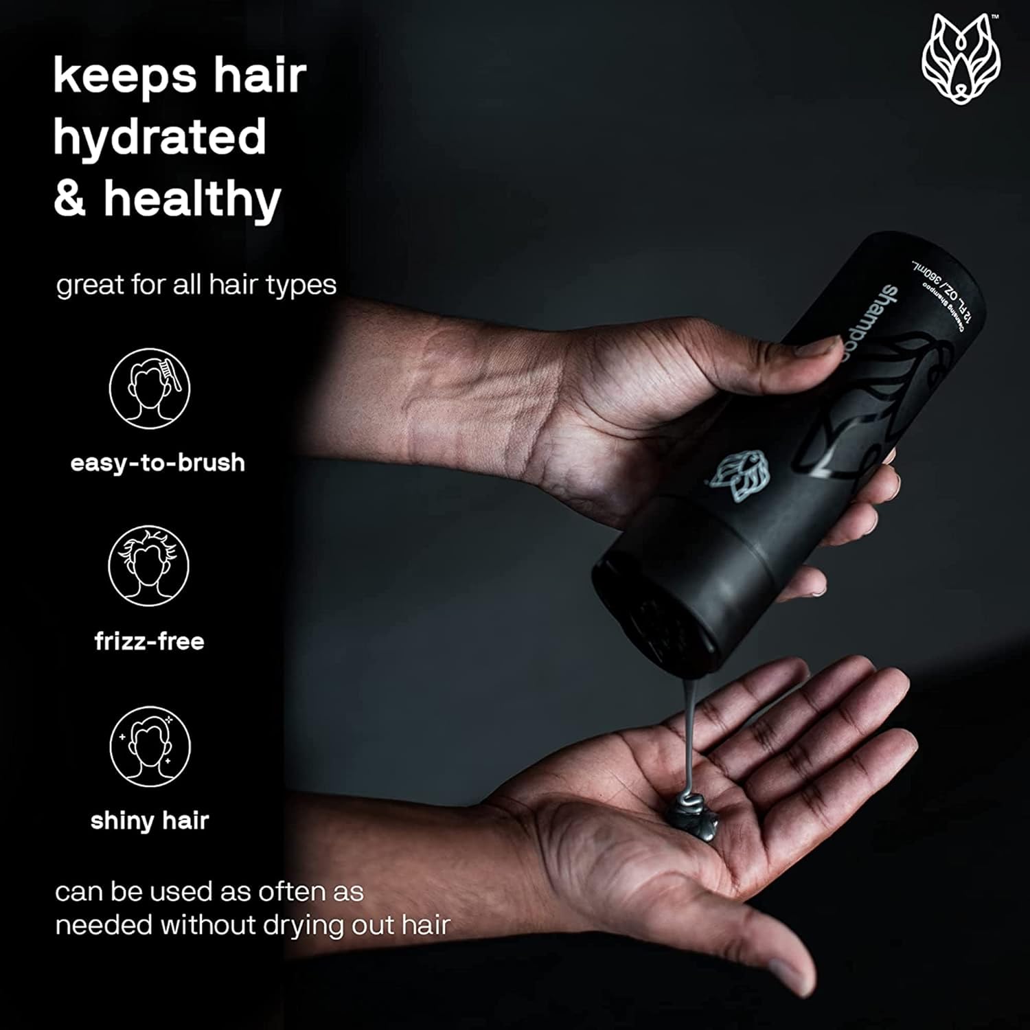 Black Wolf - Everyday Men’s Shampoo, 12 Fl Oz - Charcoal Powder Cleanses Scalp and Fights Dirty & Greasy Hair - Thick and Rich Lather - For All Hair Types