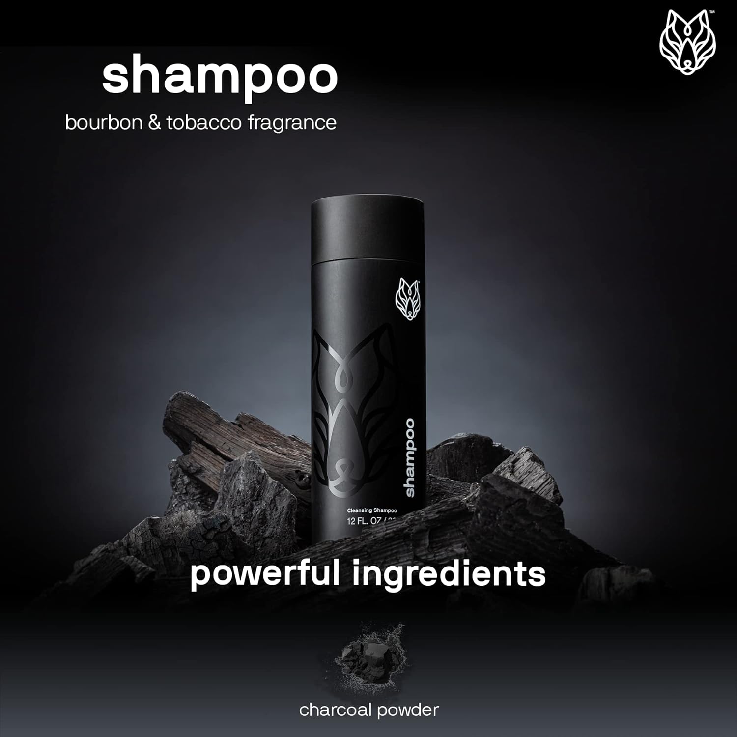 Good Hair Starts Here: Black Wolf Everyday Shampoo is a total game changer. Our unique formula has been designed to effectively cleanse your scalp and fight dirty and greasy hair. And with our amazing bourbon & tobacco fragrance, your shower will never be the same. 2-Pack. Each bottle contains 12 fl ozKeeps Hair Hydrated and Healthy: Everyday Shampoo is formulated to create easy-to-brush, frizz-free, and shiny hair. Our ingredients moisturize, strengthen, hydrate, and repair your strandsGentle Enough for Everyday Use: This shampoo is formulated to be used as often as needed without drying out your scalp or damaging your hairThick & Rich Lather: Our shampoo is designed to create a rich, foaming lather that removes dirt and unwanted oils to leave your hair feeling clean and healthyExtra Effective Personal Care for Guys: At Black Wolf, we’re reinventing the men’s grooming category, one product at a time. We provide extra effective personal care for guys—without the extra. We use simple formulas and high-quality ingredients to help you look and feel your best. And it’s reasonably priced, meaning that any guy can be a Black Wolf GuyBlack Wolf Everyday Men’s Shampoo - 2-Pack (12 Fl Oz) - Charcoal Powder Cleanses Scalp and Fights Dirty & Greasy Hair - Thick & Rich Lather Daily Shampoo - For All Hair Types