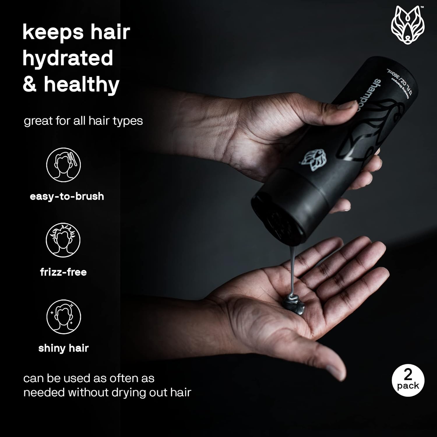 Black Wolf Everyday Men’s Shampoo - 2-Pack (12 Fl Oz) - Charcoal Powder Cleanses Scalp and Fights Dirty & Greasy Hair - Thick & Rich Lather Daily Shampoo - For All Hair Types