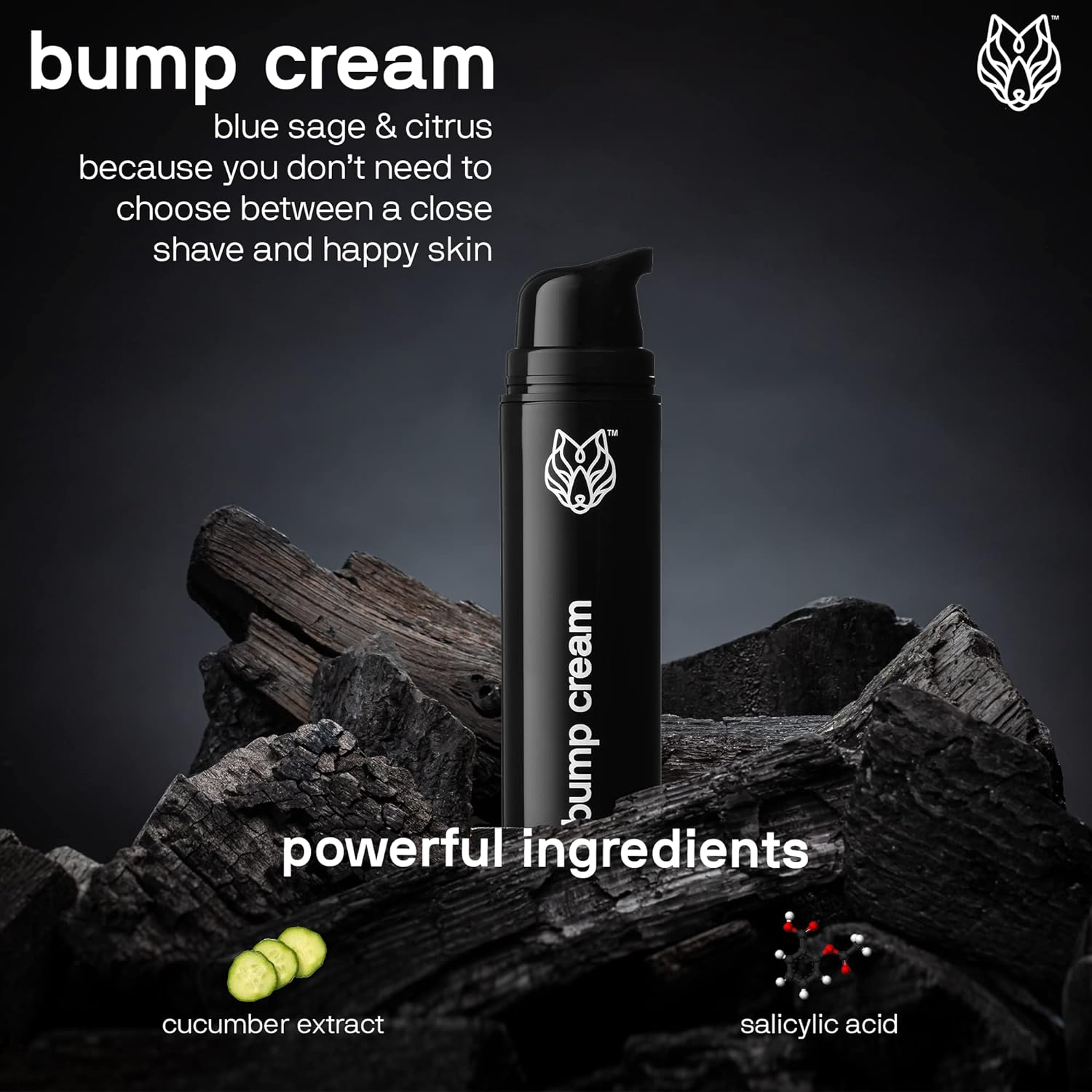 Soothing Razor Bump Cream: Our Black Wolf Soothing Razor Bump Cream for men. Formulated with salicylic acid, cucumber extract, and a blue sage and citrus scent. This stuff helps unclog pores, the appearance of pores and blemishes, and dry skin cells blocking hair growth. Trust us, you will want this one on hand wherever you go. Each bottle contains 2 fl ozCucumber and Salicylic Acid: Cucumber and salicylic acid are your friends. Loyal friends, in fact! Cucumber extract, a powerful ingredient, soothes the feeling of razor bumps. All while salicylic acid removes the dry skin cells clogging your poresFor Daily Use: Our Black Wolf Soothing Razor Bump Cream is most effective when it’s used consistently as a part of your daily skincare routine. Unlike other razor bump treatments out there that dry out your skin, Black Wolf’s active ingredients are balanced for daily use and hydrate your skin. To use, apply a nickel-sized amount and cover your skin with a thin layer. Do not rinse and use directly after you shaveIngredients That Work: We designed our Soothing Razor Bump Cream with powerful, high-quality sulfate and paraben-free ingredients that work as hard as you do. From salicylic acid, cucumber extract, blue sage, to citrus, you’ll find only the good stuff hereExtra Effective Skincare for Guys: At Black Wolf, we’re reinventing the men’s grooming category, one product at a time. We provide extra effective skincare for guys -- without the extra. A simple formula for better skin, created specifically for guys. Black Wolf is made with the best possible ingredients to clean, soothe, and hydrate your skin. And it’s reasonably priced, meaning that any guy can look and feel his best. Any guy can be a Black Wolf GuyBlack Wolf Nation Soothing Razor Bump Cream - 1.7 Fl Oz - Soothes Irritated Skin with Cucumber Extract and Helps Prevent Acne Breakouts - Safe for Daily Use and Won't Dry Out Your Skin