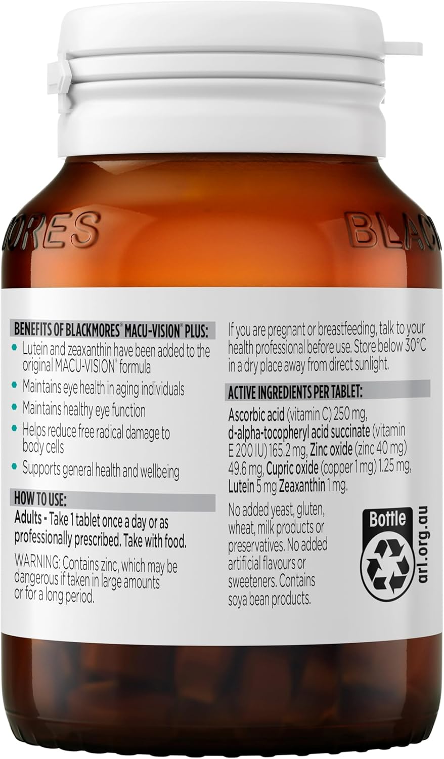 The Blackmores Macu-Vision Plus is an antioxidant eyes formula containing nutrients that may help t