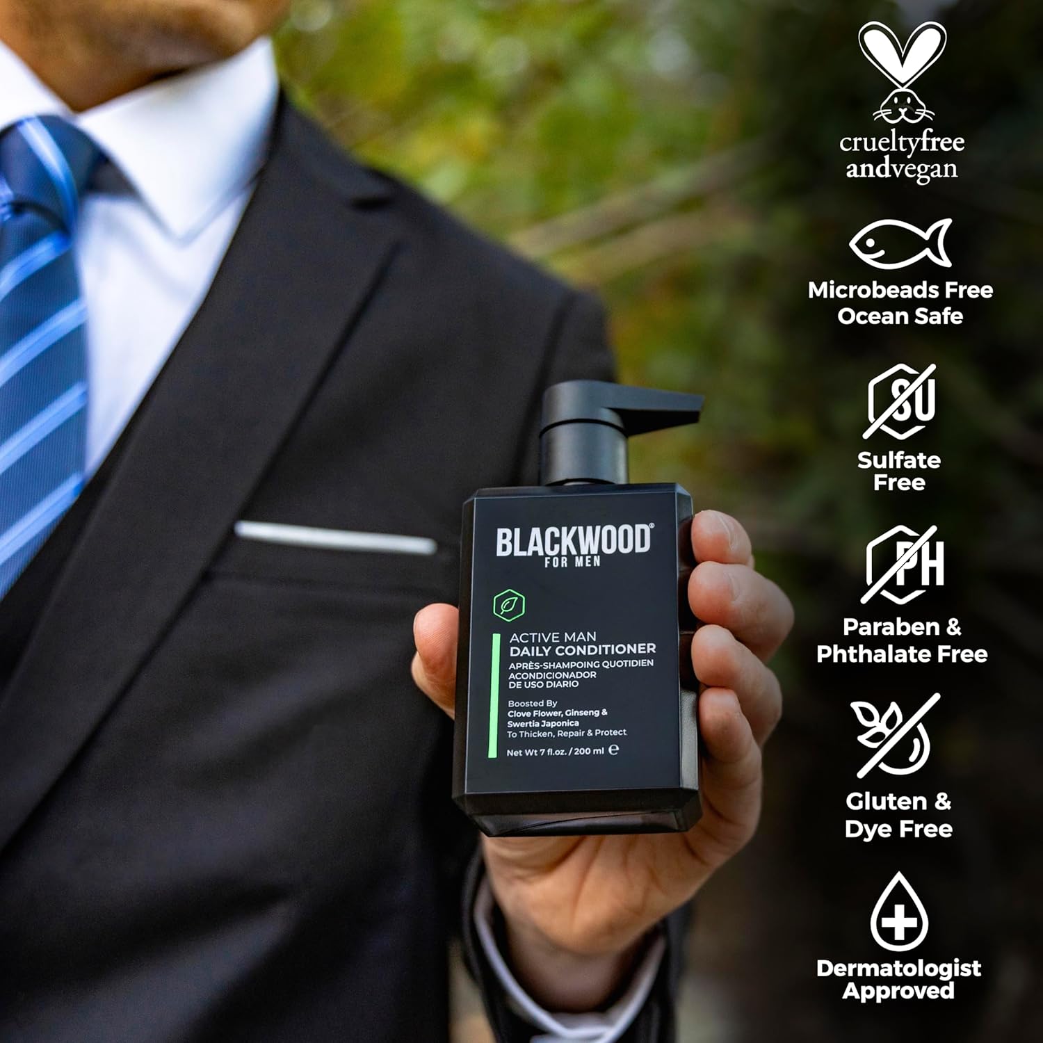 Blackwood For Men Active Man Daily Conditioner - Men'S Thickening Conditioner For Hair Loss & Dandruff - Deep Treatment For Shine - Natural Vegan Formula - Sulfate, Paraben, & Cruelty-Free (7 Oz)