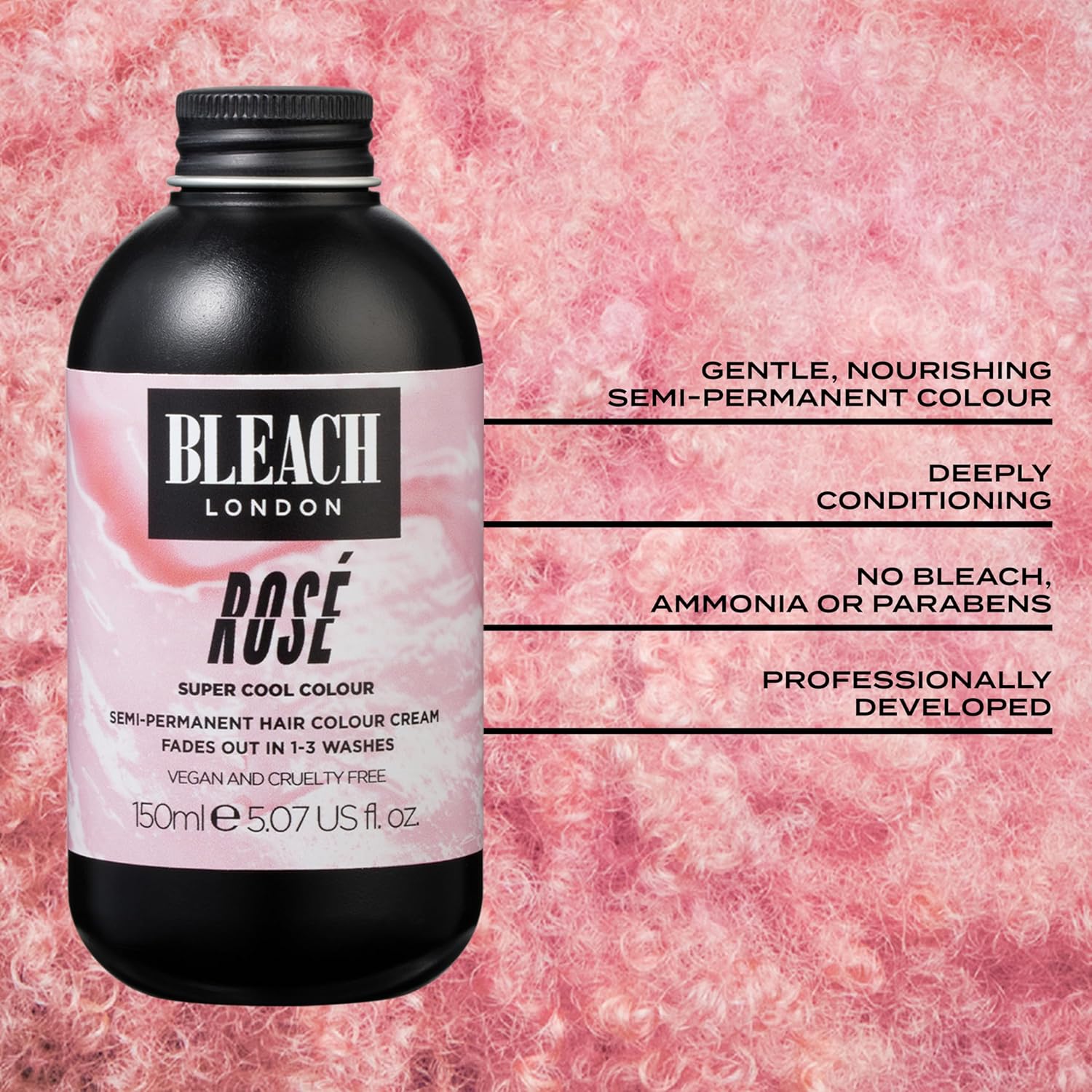 Bleach London Rose Color - Semi-Permanent Pastel Pink, Vegan, Cruelty Free, Temporary Hair Color Cream 5.07 Fl Oz