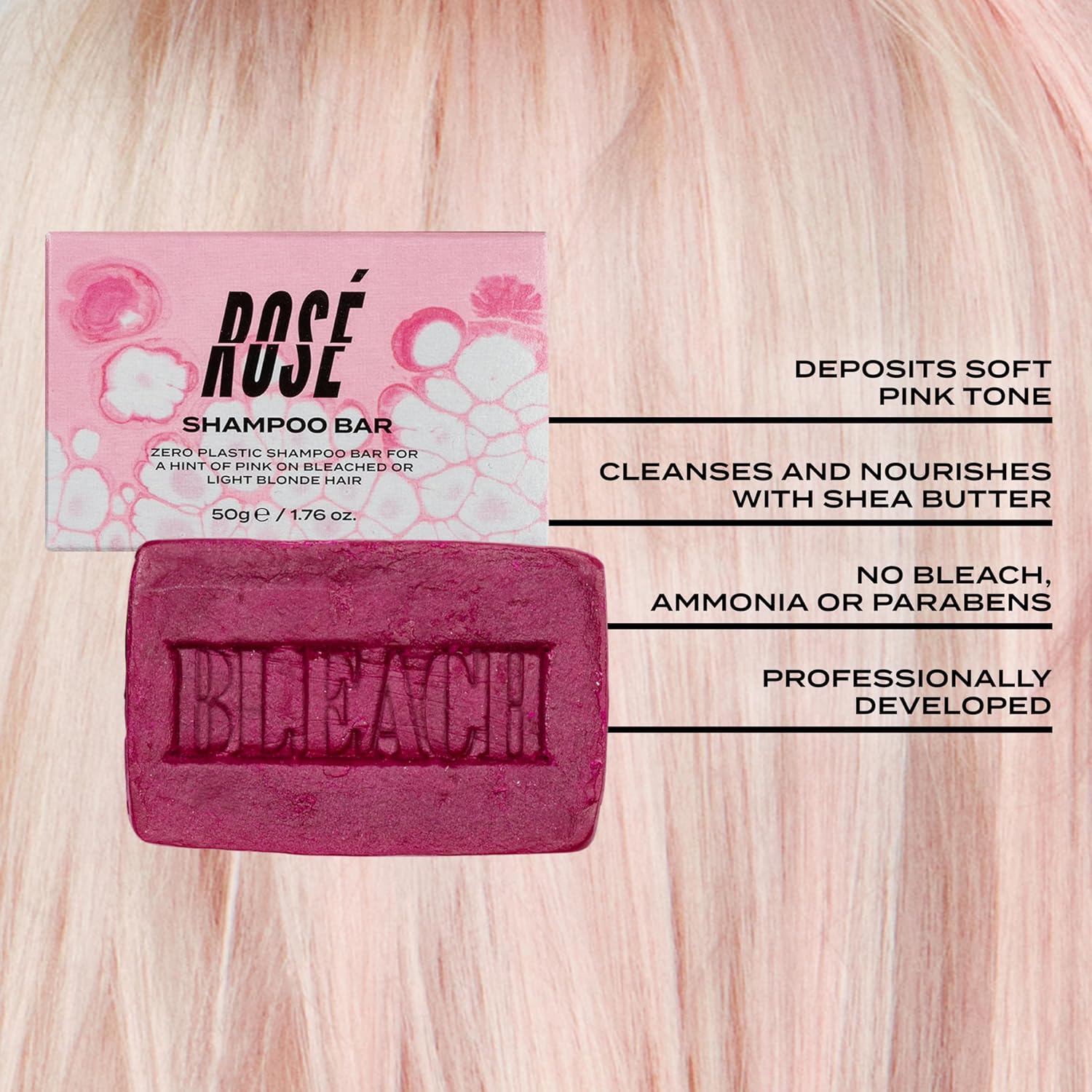 Bleach London Rose Shampoo Bar - Pale Pink Rinse, Vegan, Cruelty Free, Colour Protected Clean, Colour Depositing Formula, 250 Ml