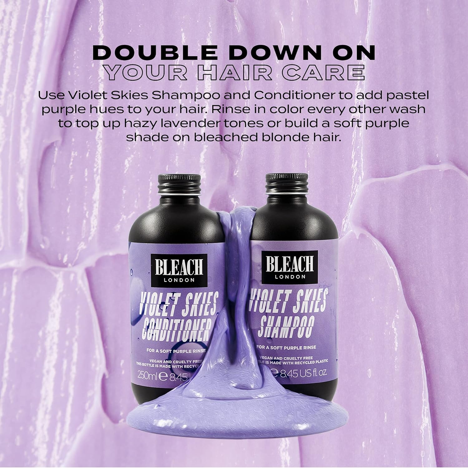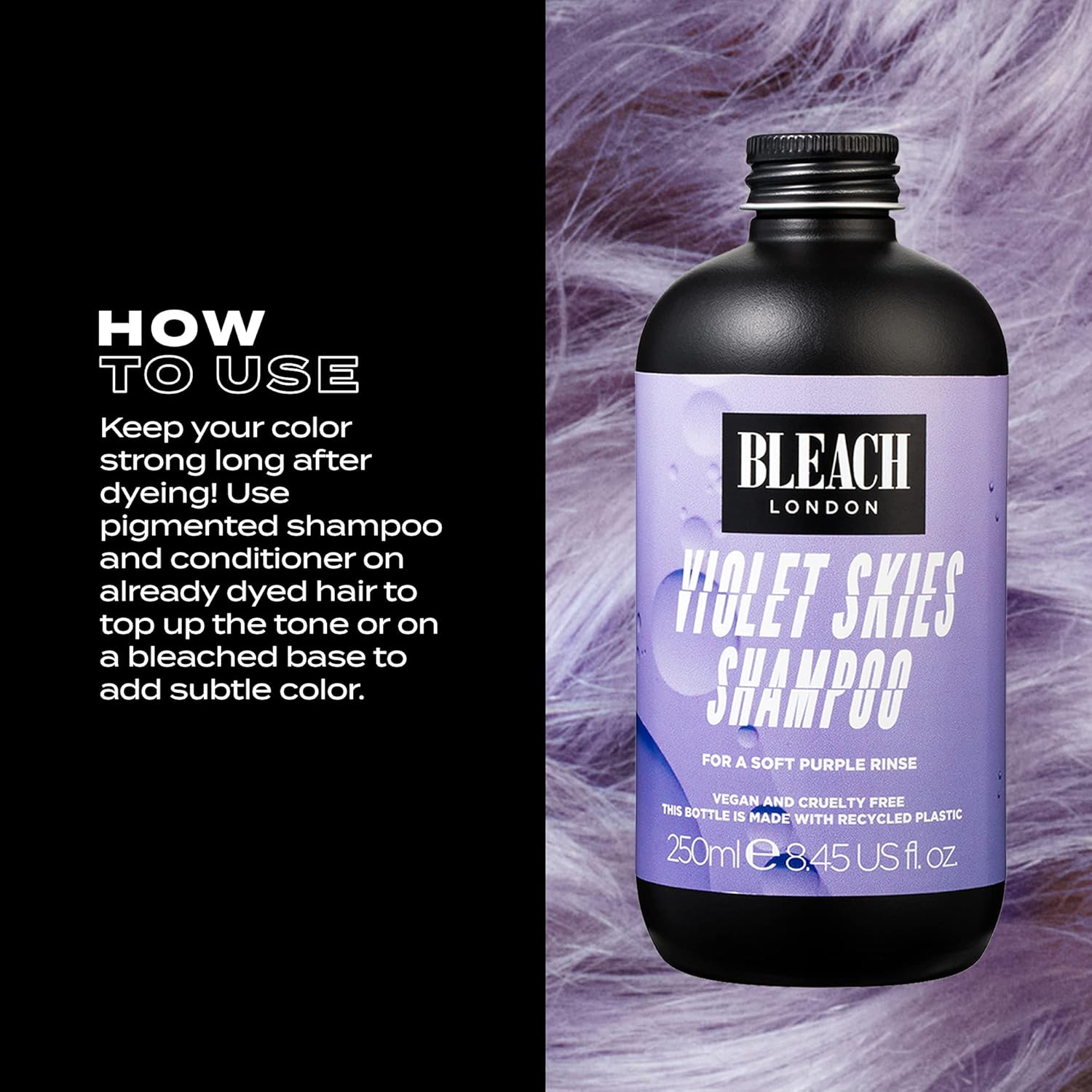 Bleach London Violet Skies Shampoo- High Pigmented Pastel Purple Rinse, Vegan Cruelty Free, Color Protected Clean, Color Depositing Formula 8.45 Fl Oz
