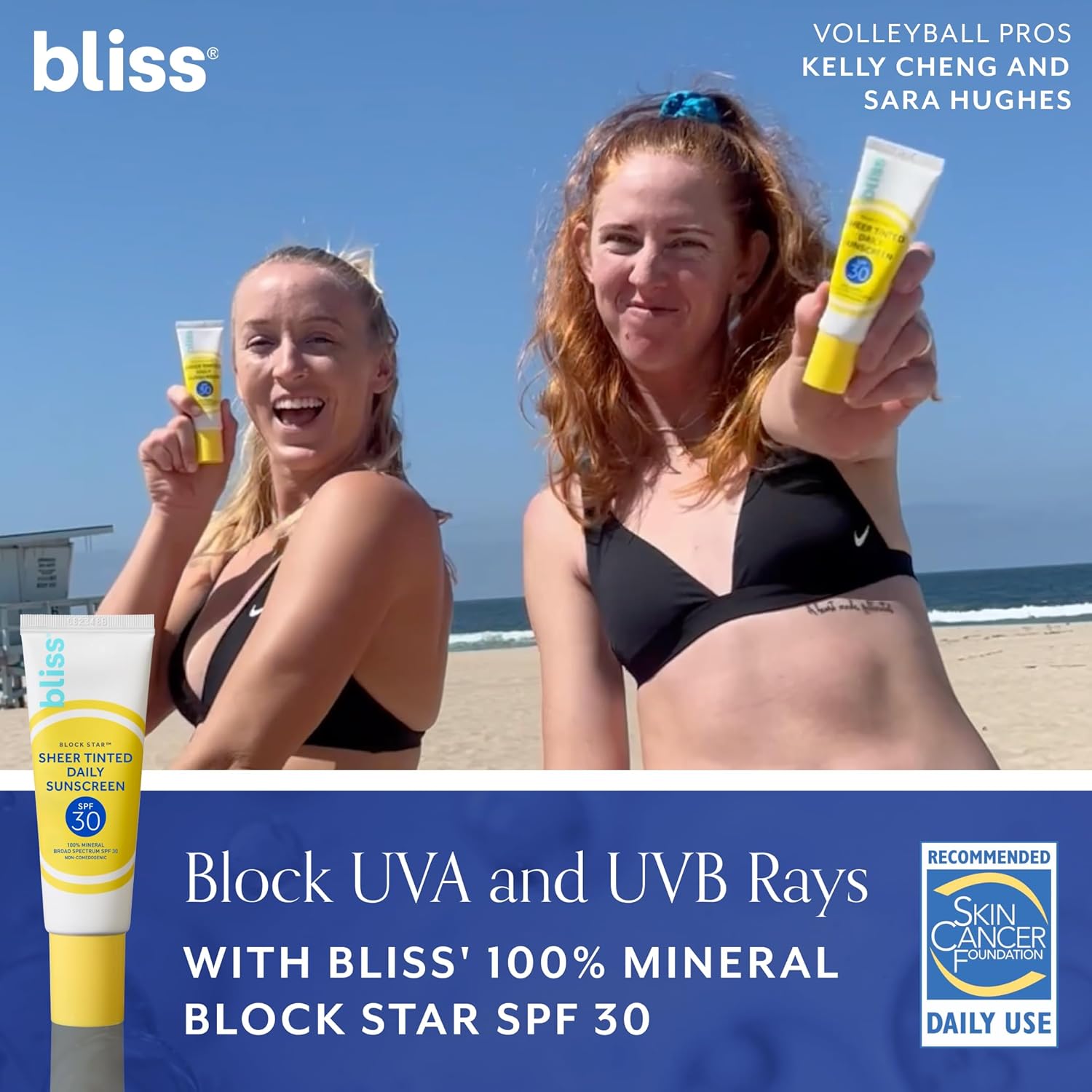 Bliss Block Star Spf 30 Invisible Daily Tinted Sunscreen With Zinc Oxide, Sunscreen & Makeup Primer - 100% Mineral Broad Spectrum Sunscreen With Titanium Dioxide And Antioxidant Blend,- 1.4 Fl Oz