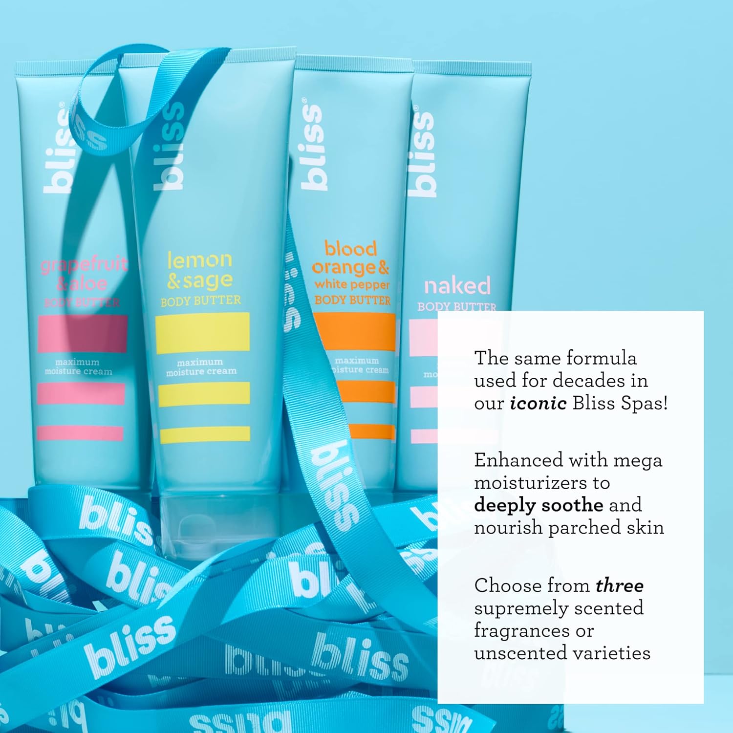 Bliss Hydrate And Exfoliate Duo Body Butter - Grapefruit And Aloe - Maximum Moisture Cream - 6.7 Fl Oz - Body Lotion For Dry Skin Satin-Skin Body Polish - Lemon And Sage - Body Scrub Wit