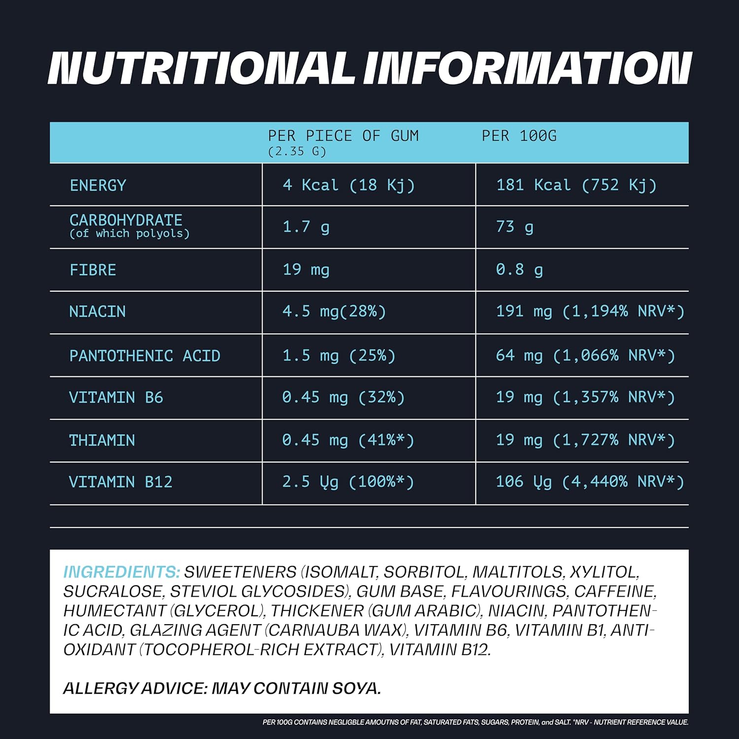 Blockhead Energy Gum (30 Pieces) | 50Mg Fast-Release Caffeine | Informed Sport | Pre Workout & Endurance | Sports Nutrition | Mint Flavoured | Vegan