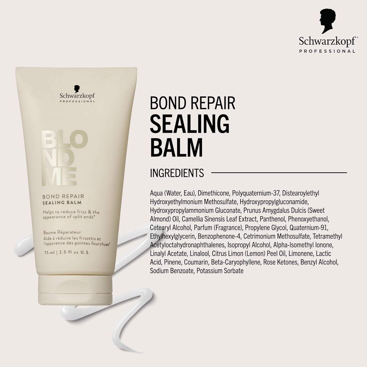 BlondMe Bond Repair Sealing Balm for Blonde Hair | Tame Split Ends & Reduce Frizz | Heat Protection | For Shiny, Smooth Blonde, Lightened, & Grey Hair, 2.5 Fl Oz