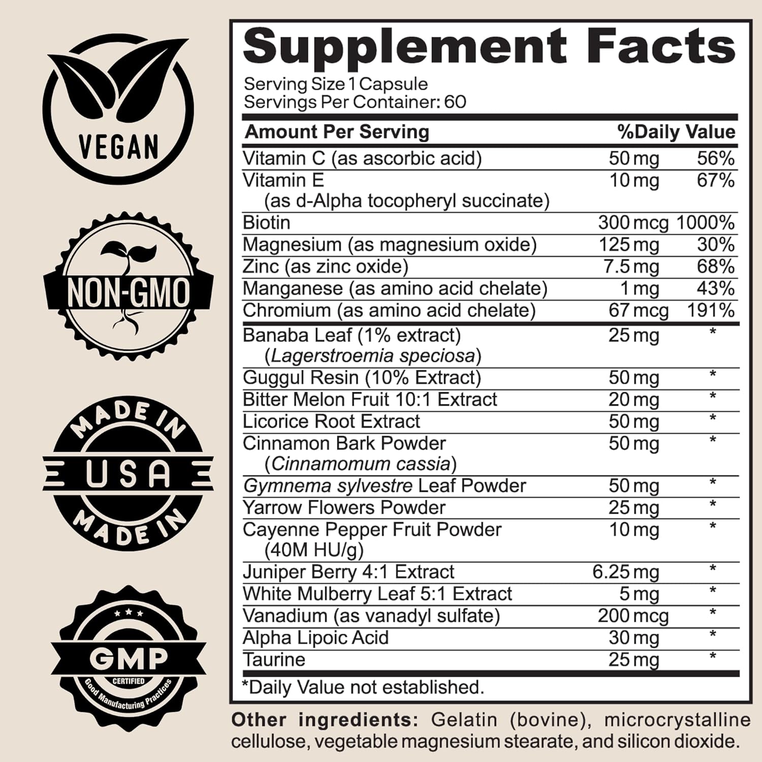 Blood Sugar Support Supplement With Cinnamon, Bitter Melon β Supports Healthy Blood Sugar Levels Already Within Normal Ranges | Licorice Root Extract - 60 Capsules