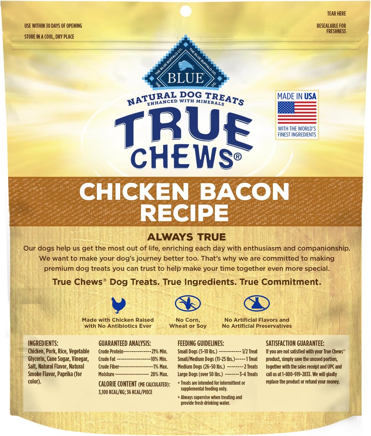 Give Your Dog The Taste Of Real Chicken With Blue True Chews Chicken Bacon Recipe Natural Dog Treats. Made With Real Usa Chicken As The First Ingredient, These Tender Dog Treats Are Easy To Tear Into Smaller Pieces, So They'Re Great For Dogs Of All Breed Sizes And Ages. And Like All Blue Buffalo Dog Treats, These Treats For Dogs Never Contain Chicken (Or Poultry) By-Product Meals, Corn, Wheat, Soy, Artificial Flavors, Or Preservatives. Watch Their Tail Wag When You Reward Them With Blue True Chews Dog Treats