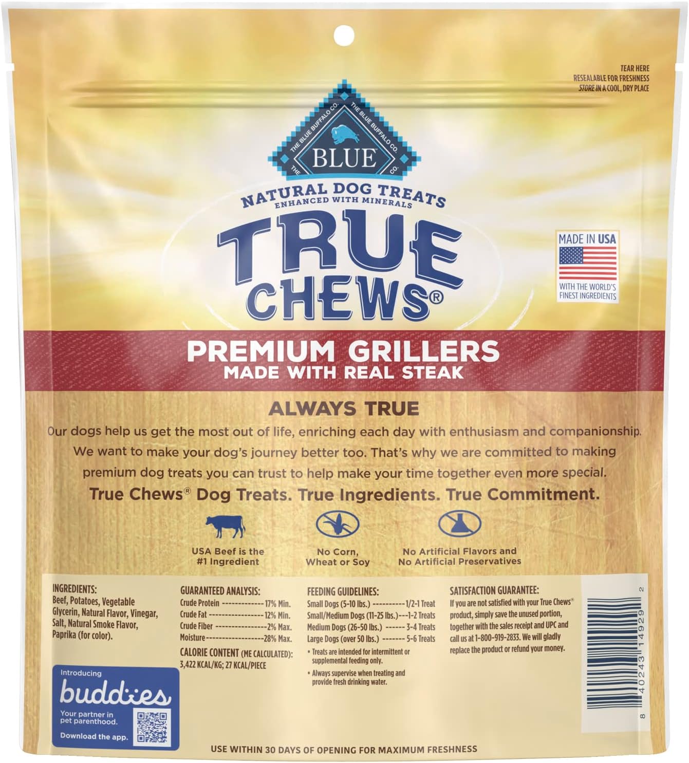 Blue Buffalo True Chews Premium Grillers Natural Dog Treats, Steak 20 Oz Bag