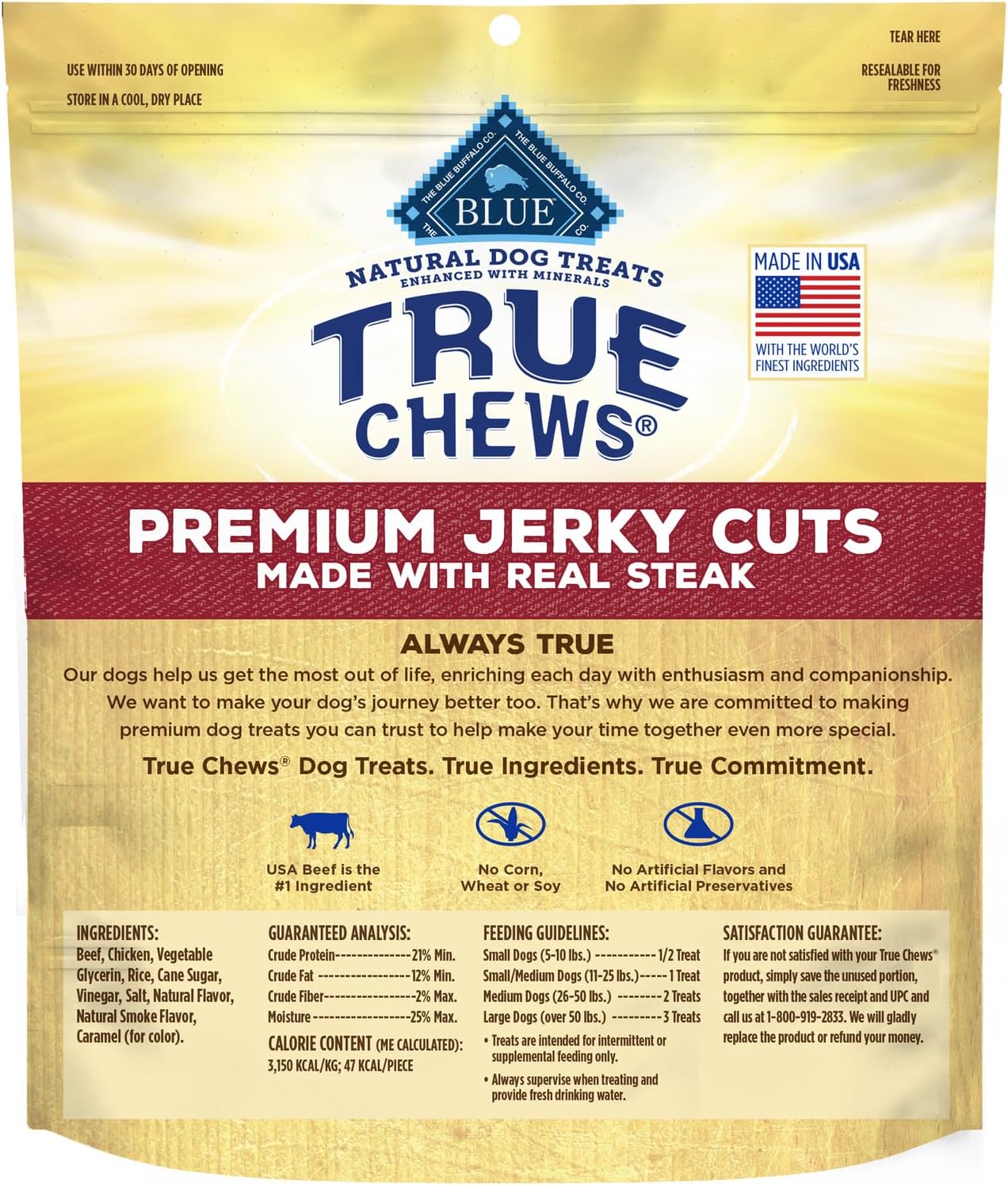 Blue Buffalo True Chews Premium Jerky Cuts Dog Treats, Made In The Usa With Natural Ingredients, Beef, 20-Oz. Bag
