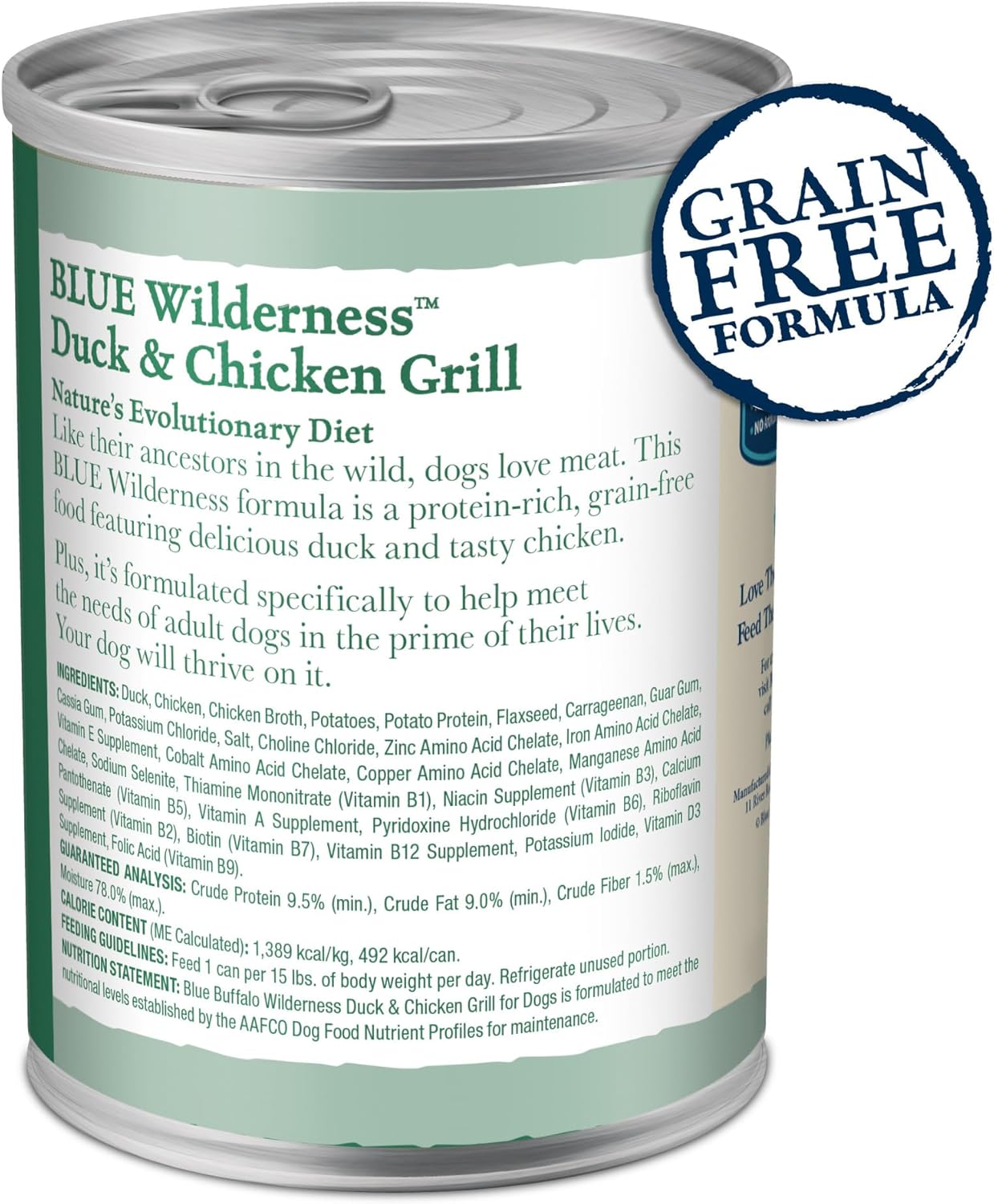 Contains: Twelve (12) 12.5-Oz. Cans Of Blue Wilderness Adult Wet Dog Food, Duck & Chicken Grill