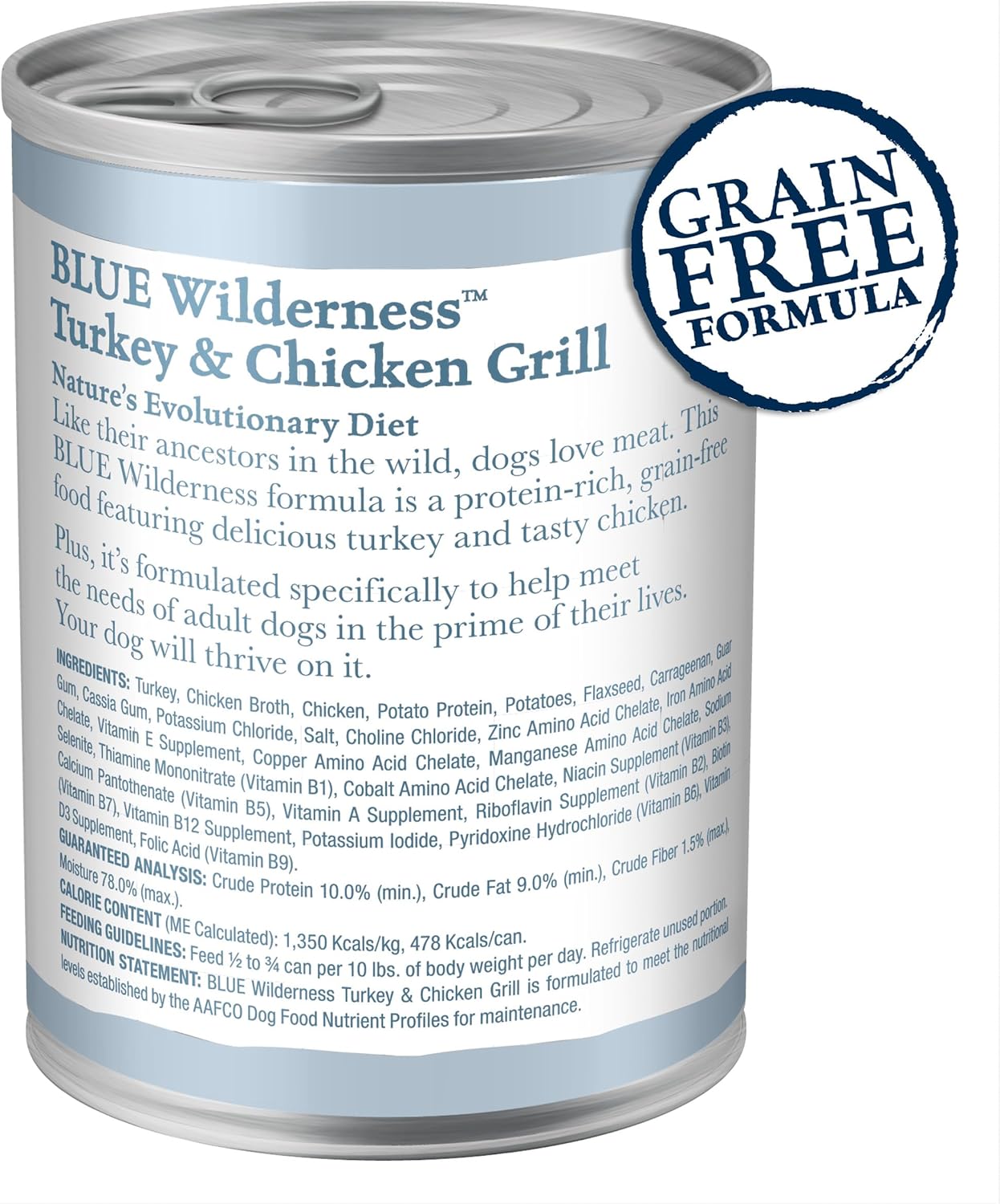 Product Description Feed Your Dog'S Wild Side With Blue Wilderness Natural Wet Dog Food, Turkey & Chicken Grill. Made With A Protein-Rich Blend Of High-Quality Turkey And Chicken, This Grain-Free Dog Food Provides The Energy Your Dog Needs To Stay Active. Your Dog Will Love The Flavors And Texture Of This High-Protein Recipe. And Like All Blue Buffalo Natural Dog Food Recipes, Blue Wilderness Dog Food Does Not Contain Any Chicken (Or Poultry) By-Product Meals. It Is Also Free Of Corn, Wheat, Soy, Artificial Flavors, And Preservatives. You Can Feel Great Knowing Blue Buffalo Is Helping Your Dog Thrive With A Protein-Packed Diet. From The Manufacturer Blue Wilderness Is Made With The Finest Natural Ingredients, Including Generous Amounts Of Tasty And Nutritious Turkey And Chicken. And Wilderness Contains No Chicken Or Poultry By-Product Meals, Artificial Preservatives, Corn, Wheat Or Soy