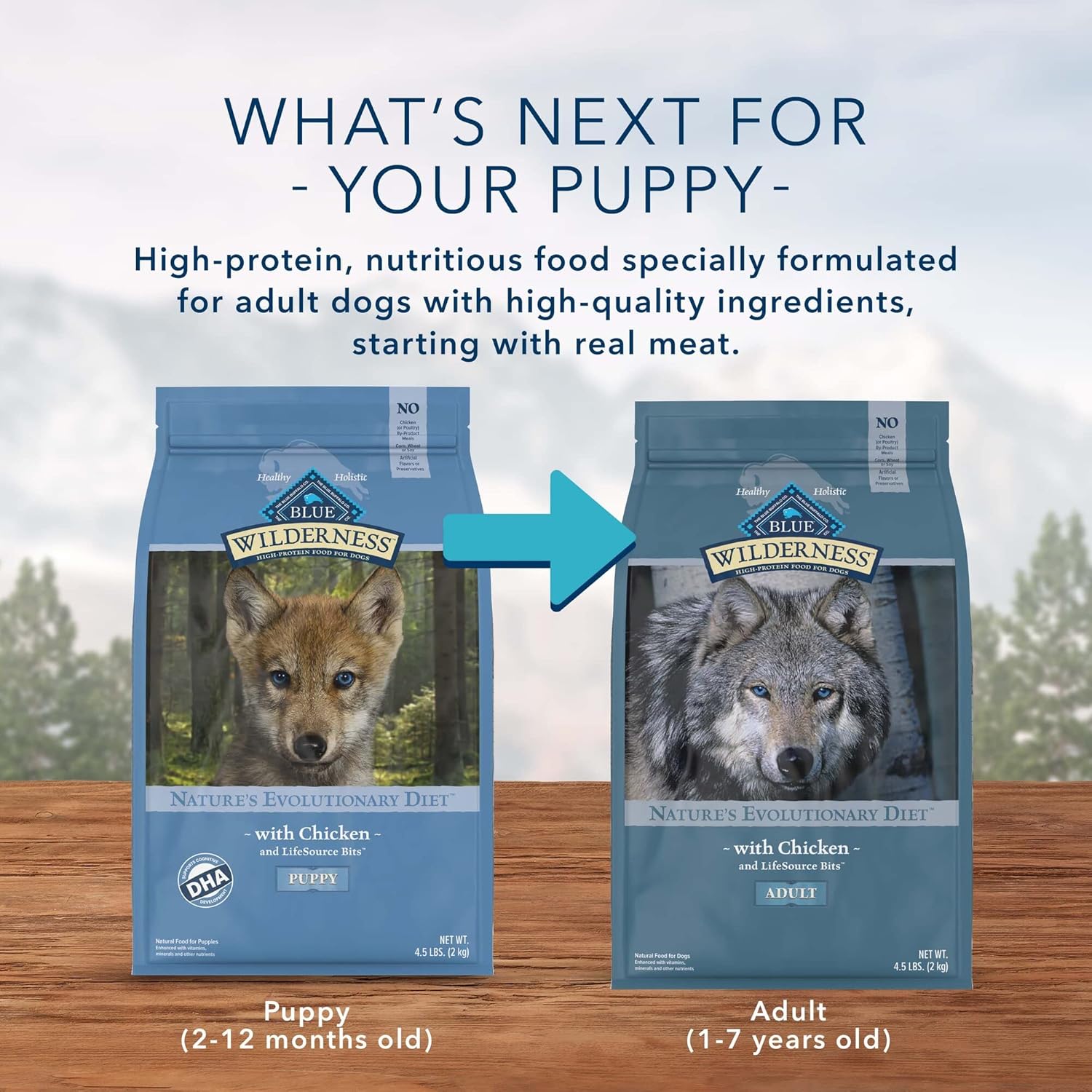 Blue Wilderness Natural Dry Puppy Food Satisfies The Spirit Of The Wolf In Your Canine With More Of The Meat Pups Love. This High Protein, Grain Free Formula Starts With Delicious, Protein-Rich Chicken, Features Antioxidant-Rich Lifesource Bits And Is Enhanced With Vitamins, Minerals And Other Nutrients. Specially Formulated With High-Quality Protein To Support Healthy Muscle Growth, This Nutritious Recipe Also Features Dha To Support Your PuppyāS Cognitive Development. Bundle: Contains One (1) 24-Lb Bag Of Blue Wilderness High Protein, Natural Puppy Dry Dog Food, Chicken And Twelve (12) 12.5-Oz Cans Of Blue Wilderness High Protein Grain Free, Natural Puppy Wet Dog Food, Turkey & Chicken Grill