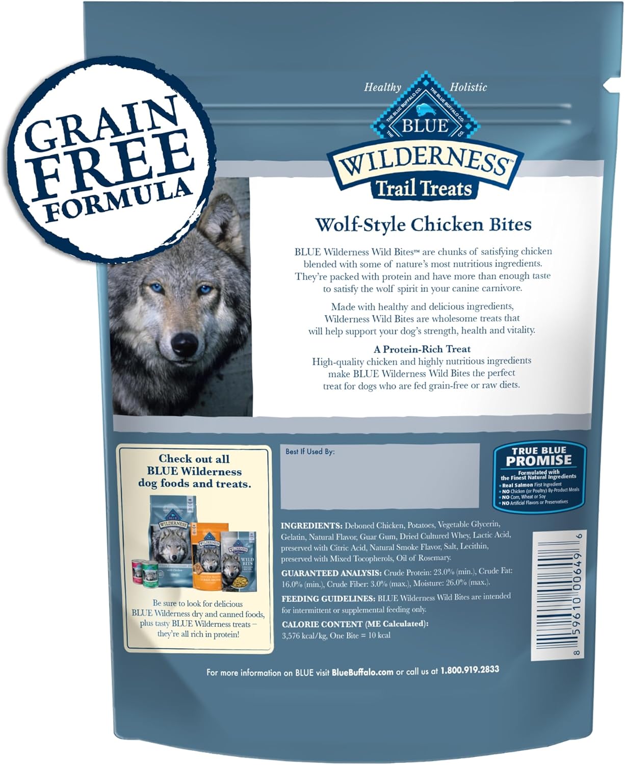 For Dogs That Love The Taste Of Real Meat, Reward Them With Blue Wilderness Trail Treats Wild Bites Soft-Moist Dog Treats. Made With Real Chicken As The First Ingredient, These Soft Dog Treats Are A Great Training Treat For Dogs Of All Breed Sizes And Ages. The High-Protein And Grain-Free Recipe Is Formulated With Healthy And Wholesome Ingredients That Help Promote Your Dog'S Strength, Health, And Vitality. And Like All Blue Buffalo Dog Treats, These Treats For Dogs Don'T Contain Chicken (Or Poultry) By-Product Meals, Corn, Wheat, Soy, Artificial Flavors, Or Preservatives. Watch Your Dog'S Tail Wag When You Treat Them To Blue Buffalo Dog Snacks