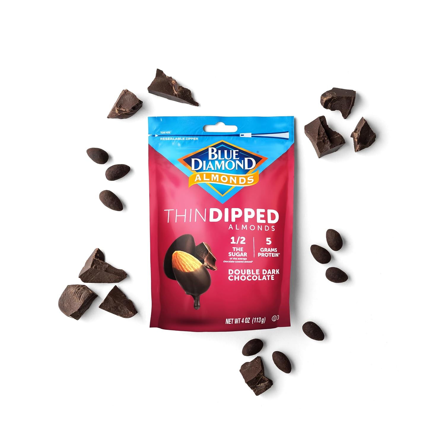 GUILT-FREE SNACKING: Contains 4oz. Resealable bag of perfectly thin dipped almonds for guilt-free snacking and healthier snacking