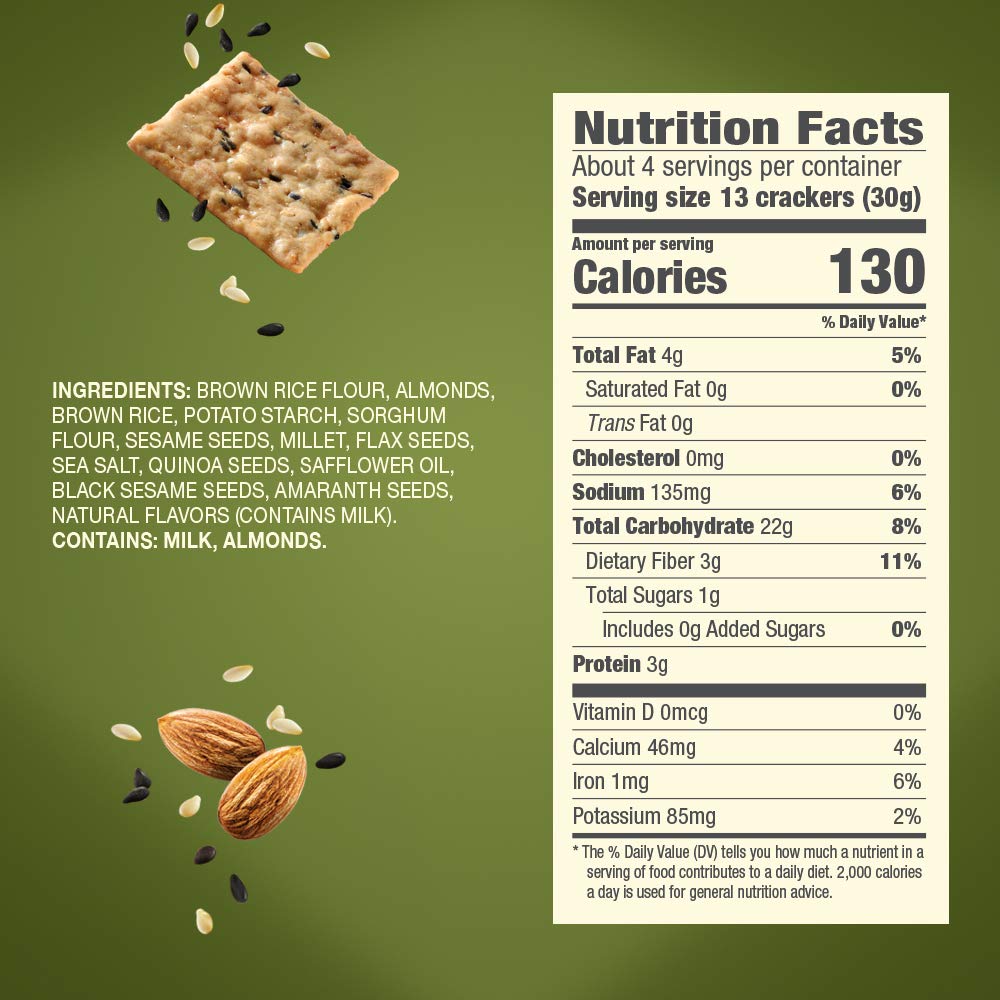 About this item Creafted with brown rice, almonds and sesame seeds Perfect with your favorite dips, cheeses, or spreads Tasty snack, great for sharing › See more product details,Creafted with brown rice, almonds and sesame seeds,Perfect with your favorite dips, cheeses, or spreads,Tasty snack, great for sharing