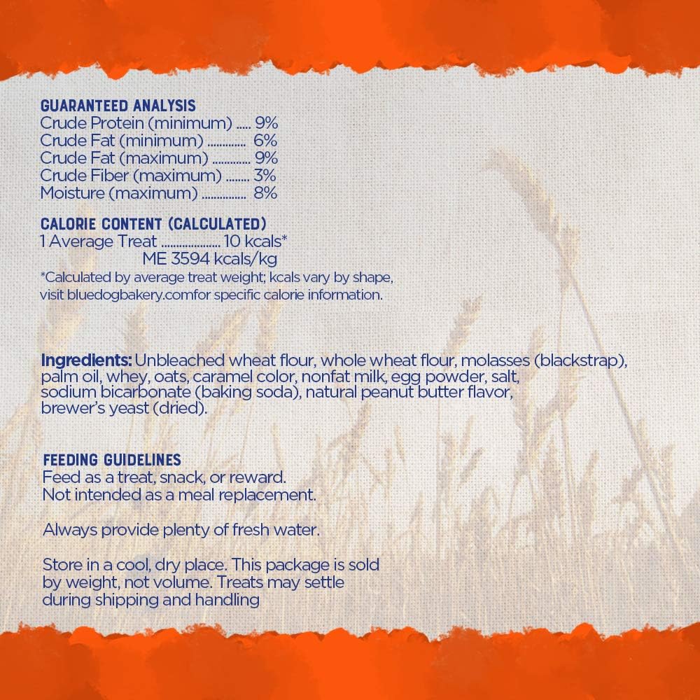 Blue Dog Bakery Bakery-Fresh More Flavors Include Their Original Peanut Butter & Molasses, Natural Cheese, Grilled Chicken And Bacon & Cheese Flavors.We Don'T Use Any Animal By-Products, And We Make Our Treats Low Fat To Keep Your Dogs Healthy. Our Treats Are The Perfect Addition To Dog Food That Keeps Your Pup Happy And Healthy.Since 1998, Blue Dog Bakery Has Baked Up Premium Treats With 100% Pure And Natural Ingredients. Treats Made With The Highest Quality Ingredients To Ensure They Are Safe, Wholesome And Downright Yummy! When We Started Baking Our Treats, The Dog Treat Industry Was Dominated By Big Corporations And Poor Quality Ingredients. We Remember Walking Through The Grocery Aisle Dismayed By The Lack Of Healthy Treat Alternatives. We Were Determined To Find A Way To Treat Better, And The First Step In That Was Obtaining Premium Ingredients. That Simple ThoughtāFresh-Baked, Healthy, And Delicious TreatsāIs What Drove Us To Start Blue Dog Bakery In 1998. Ten Years Later, We Were The First All-Natural, Premium, And Low Fat Dog Treat Option To Be Nationally Distributed Wherever You Buy Groceries. These Treats Are Made With Natural Whole Wheat, Real Eggs And Nonfat Milk, Which Make Them Low Fat And Easy To Digest.Although Our Treats Are Made For Dogs, We Source Only Human-Grade Ingredients For All Of Our Treats. While We Trust Our Office Dogsā Tail Wags As Positive Indicators Of Good Taste, We Also Personally Taste-Test All Of Our Products Before They Go To Market. The Treats We Give Our Dogs Are Made Strictly With Ingredients That We Would Give The Rest Of Our Families.Peanut Butter & Molasses Treats Come In A Variety Of Fun Animal Shapes And Are Made With Real Blackstrap Molasses. Made With No Additives Or Preservatives, You Can Rest Easy Knowing Your Dog Is Getting The Best Treat That All Natural Ingredients Can Bake