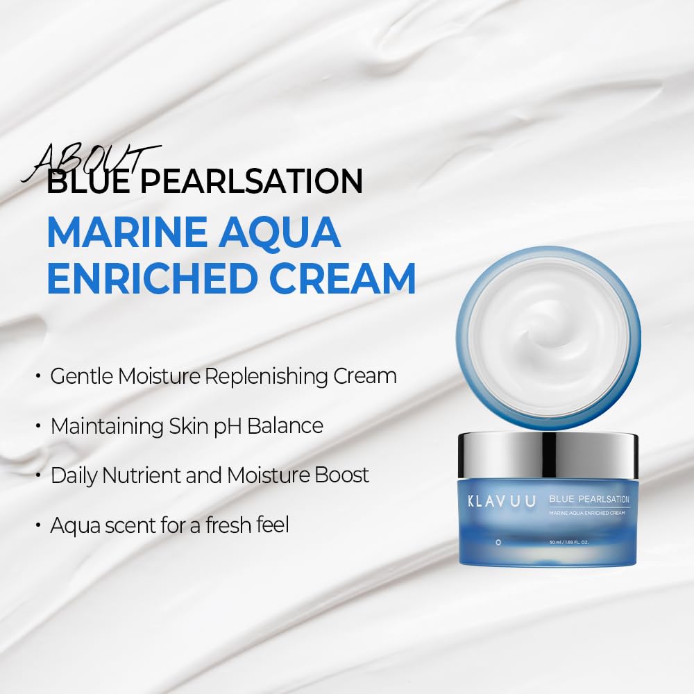 Blue Pearlsation Marine Aqua Enriched Cream - Hypoallergenic Deep Moisturizer With Apple Water For Nourished, Balanced Skin, Perfect For Sensitive Skin Seeking Hydration And Radiance β 1.69 Floz