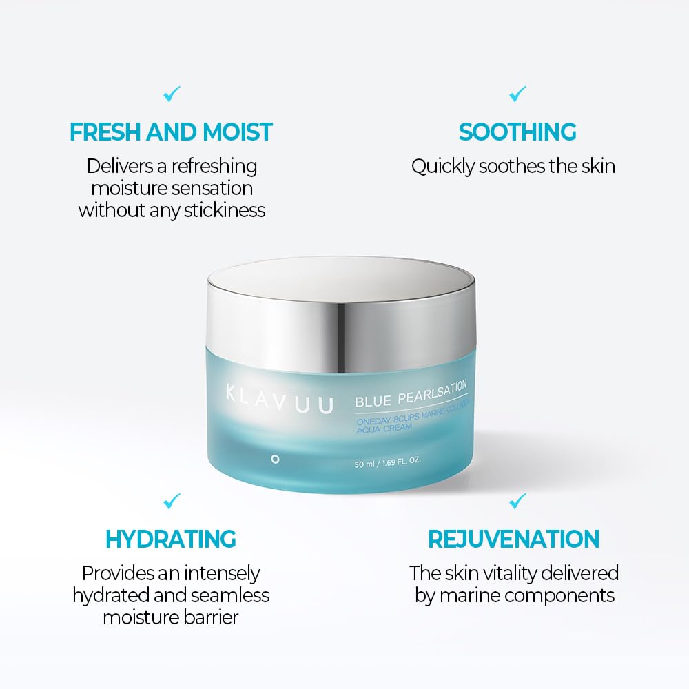 Blue Pearlsation One Day 8 Cups Aqua Cream–Cooling Effect & Light Weight Texture, Hypoallergenic Soothing & Wrinkle Care Cream With Niacinamide, Marine Collagen Formula Korean Skin Care–1.69 Floz
