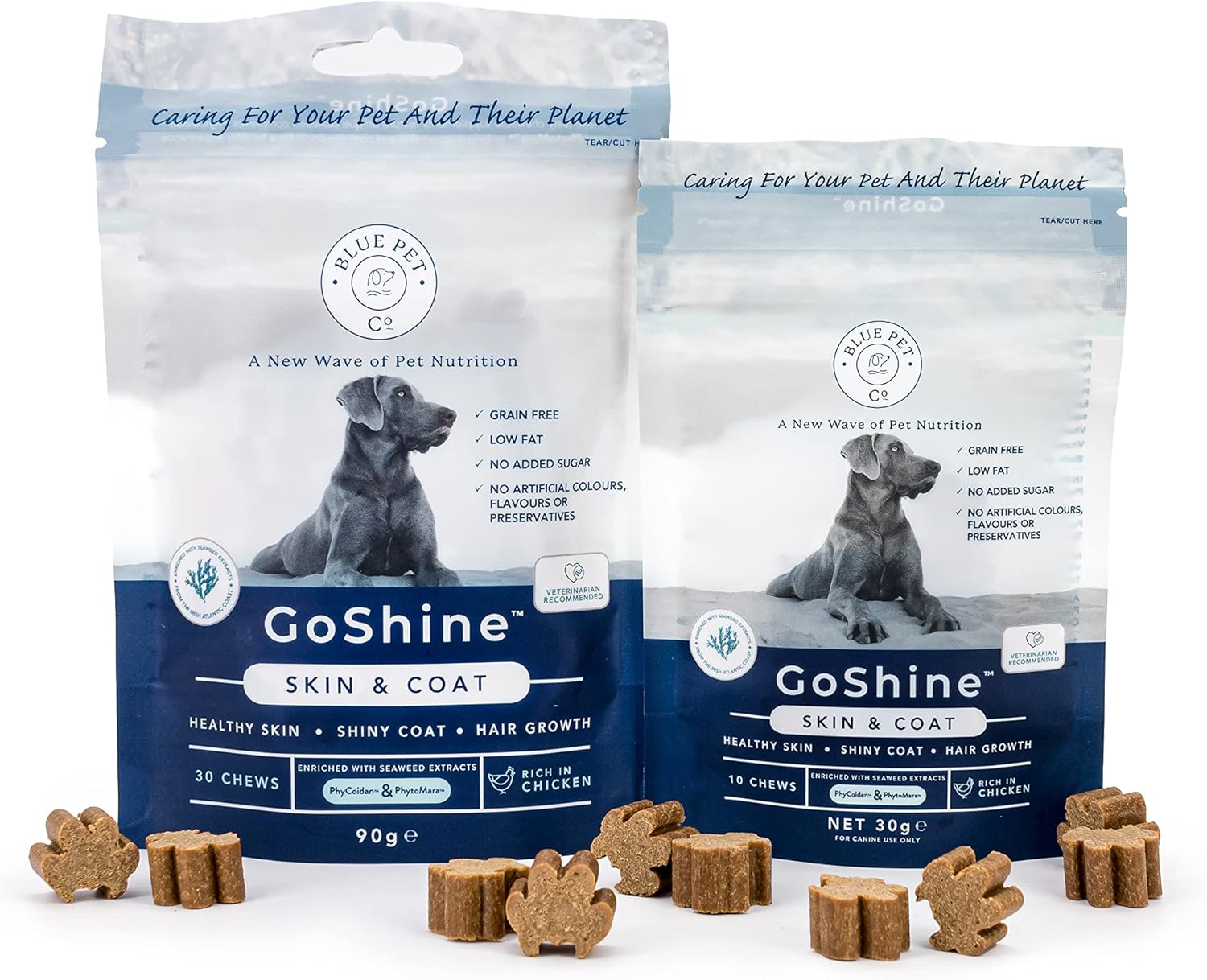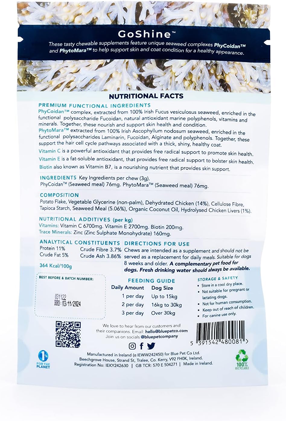 Blue Pet Co - Goshine Skin & Coat Health Supplement For Dogs - Promotes Healthy Skin, Shiny Coat & Hair Growth - Enriched With Unique Seaweed Complexes - Rich In Chicken - 10 Chews