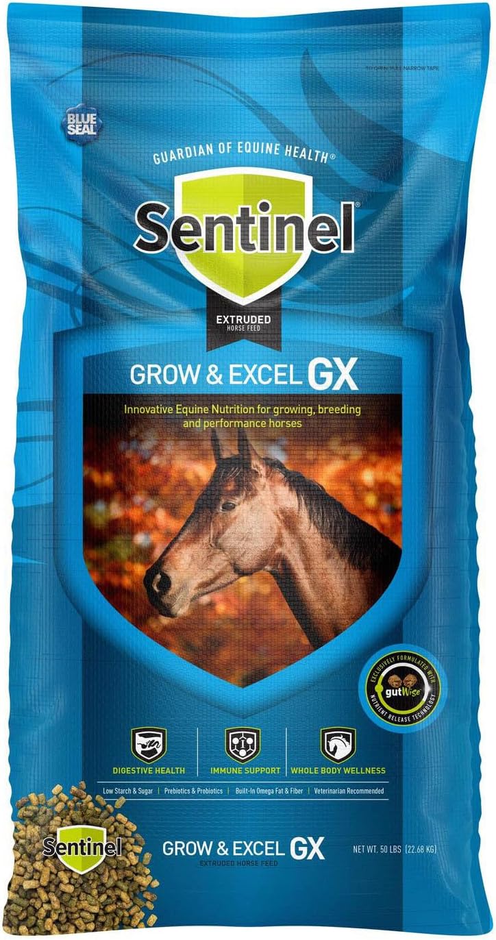 Sentinel Grow & Excel, a Nutrient Release Formula feed, is the new generation in equine nutrition formulated specifically to meet the intense demands of young growing horses and active performance horses. A precise balance of protein, high fat and fiber from low starch/sugar ingredients provides healthful nutrition throughout growth and into performance. This versatile formulation of Sentinel Grow & Excel is also an ideal choice for breeding stallions and pregnant mares in late gestation. A pressure cooked feed offers a safe and natural way to provide essential nutrition and calories to growing and performing horses and is more easily digested for optimal nutrient utilization
