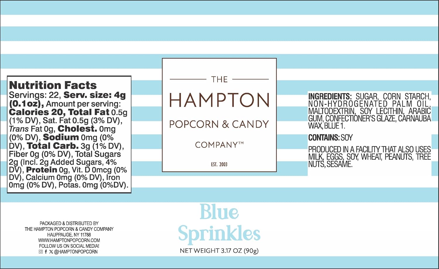 About this item Cupcake and cake decorating just got a whole lot better with sprinkles! Add a pop of playful color and sweetness to your treats with blue sprinkles. The perfect shade of blue sprinkles to match your celebratory theme. Whether you're creating a delightful batch of cupcakes or a stunning centerpiece cake, blue sprinkles are a versatile and festive way to add a touch of fun and fancy. Unleash your inner cake artist with blue sprinkles! These tiny bursts of color and flavor add playful texture to your baked goods. Use blue sprinkles for cake decorating, or fold them into batter for a surprise pop of blue in every bite. Blue sprinkles for cupcakes are playful pops of color that add a touch of whimsy. No matter the occasion, blue sprinkles are the confetti of celebration! From baby showers to birthdays, and even elegant weddings, a sprinkle of color adds a touch of playful charm to any gathering and holiday. Ice Cream Sprinkles: Dress up your ice cream sundaes with adorable blue sprinkles! They'll add a pop of color and fun to your favorite frozen treat. 3.17 OUNCE JAR: Enjoy the fun and sweet taste of blue jimmies sprinkles with 3.17 Ounce Jar - perfect for all your sweet creations! Transform your cookies and cupcakes into adorable treats with a sprinkle of blue magic! These colorful delights add a playful touch, perfect for any occasion, from classic chocolate chip cookies to festive birthday cupcakes. Since 2003, The Hampton Popcorn & Candy Company has been delighting taste buds with a delectable assortment of popcorn and candy treats, perfect for every occasion. See more product details,Cupcake and cake decorating just got a whole lot better with sprinkles! Add a pop of playful color and sweetness to your treats with blue sprinkles. The perfect shade of blue sprinkles to match your celebratory theme. Whether you're creating a delightful batch of cupcakes or a stunning centerpiece cake, blue sprinkles are a versatile and festive way to add a touch of fun and fancy,Unleash your inner cake artist with blue sprinkles! These tiny bursts of color and flavor add playful texture to your baked goods. Use blue sprinkles for cake decorating, or fold them into batter for a surprise pop of blue in every bite. Blue sprinkles for cupcakes are playful pops of color that add a touch of whimsy,No matter the occasion, blue sprinkles are the confetti of celebration! From baby showers to birthdays, and even elegant weddings, a sprinkle of color adds a touch of playful charm to any gathering and holiday,Ice Cream Sprinkles: Dress up your ice cream sundaes with adorable blue sprinkles! They'll add a pop of color and fun to your favorite frozen treat,3.17 OUNCE JAR: Enjoy the fun and sweet taste of blue jimmies sprinkles with 3.17 Ounce Jar - perfect for all your sweet creations!,Transform your cookies and cupcakes into adorable treats with a sprinkle of blue magic! These colorful delights add a playful touch, perfect for any occasion, from classic chocolate chip cookies to festive birthday cupcakes,Since 2003, The Hampton Popcorn & Candy Company has been delighting taste buds with a delectable assortment of popcorn and candy treats, perfect for every occasion