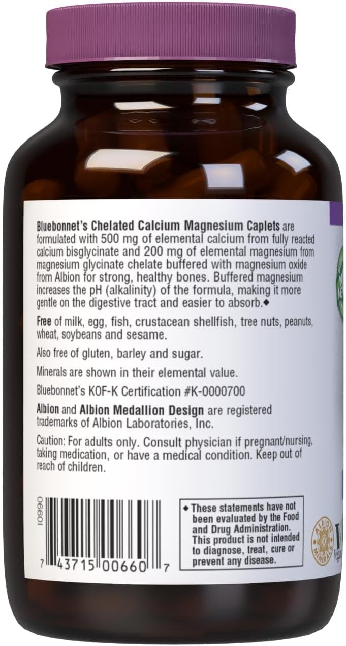 DESCRIPTION : BlueBonnet Albion Chelated Calcium Magnesium Caplets, 60 Count60 Count (Pack of 1)