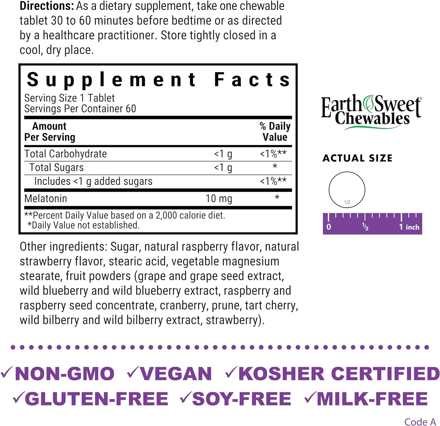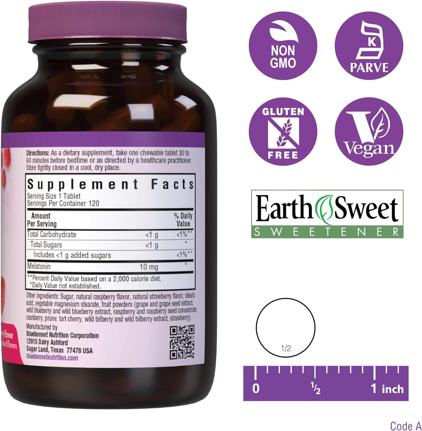 DESCRIPTION : Bluebonnet Nutrition EarthSweet Melatonin 10 mg Fast-Acting Quick Dissolve Nighttime Relaxation & Restful Sleep Support - Sleep Aid - Gluten-Free, Vegan - Raspberry Flavor - 120 Chewable Tablets120 Count (Pack of 1)