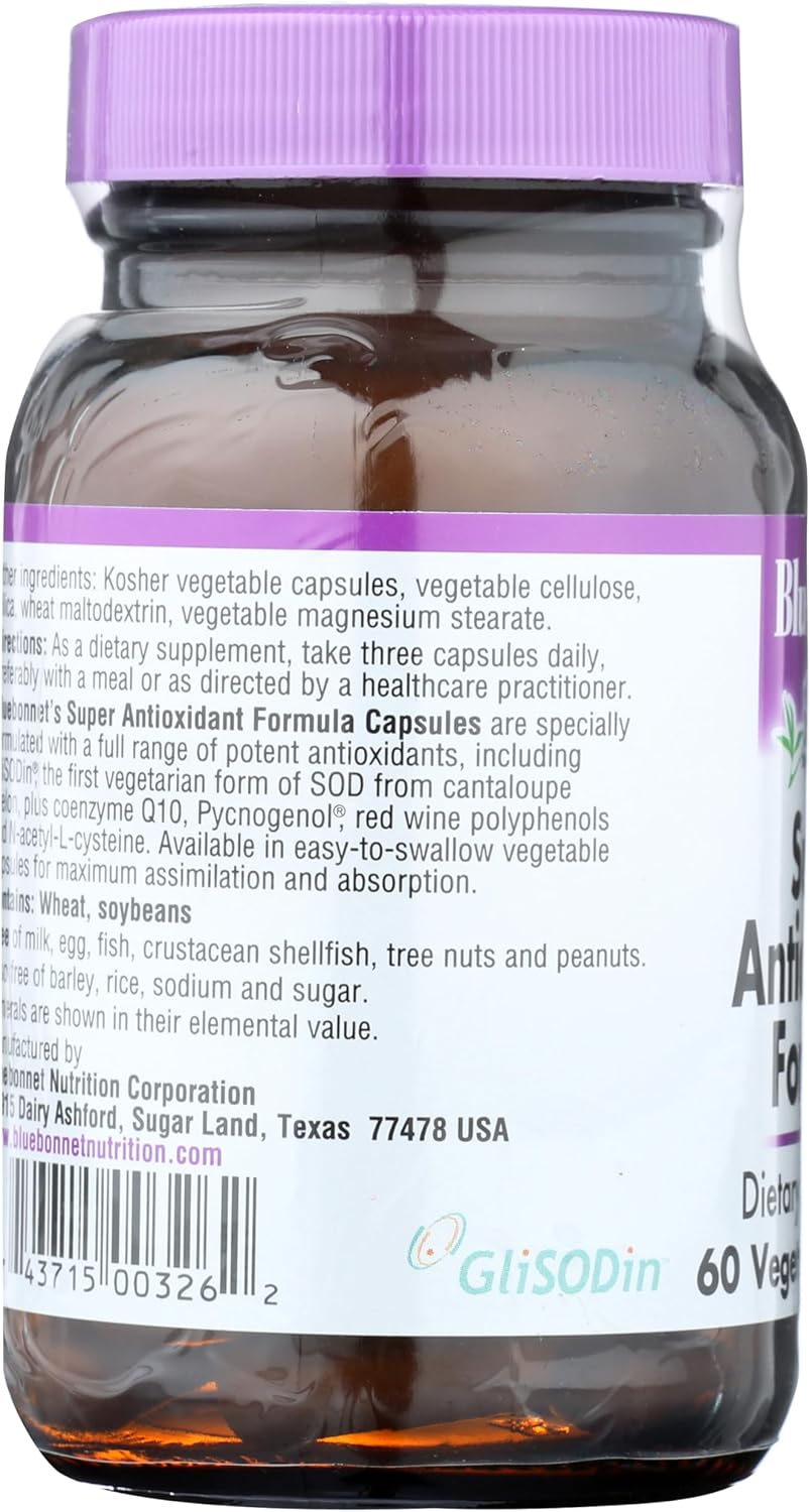 Bluebonnet Super Antioxidant Formula Vegetarian Capsules, 60 Count, White