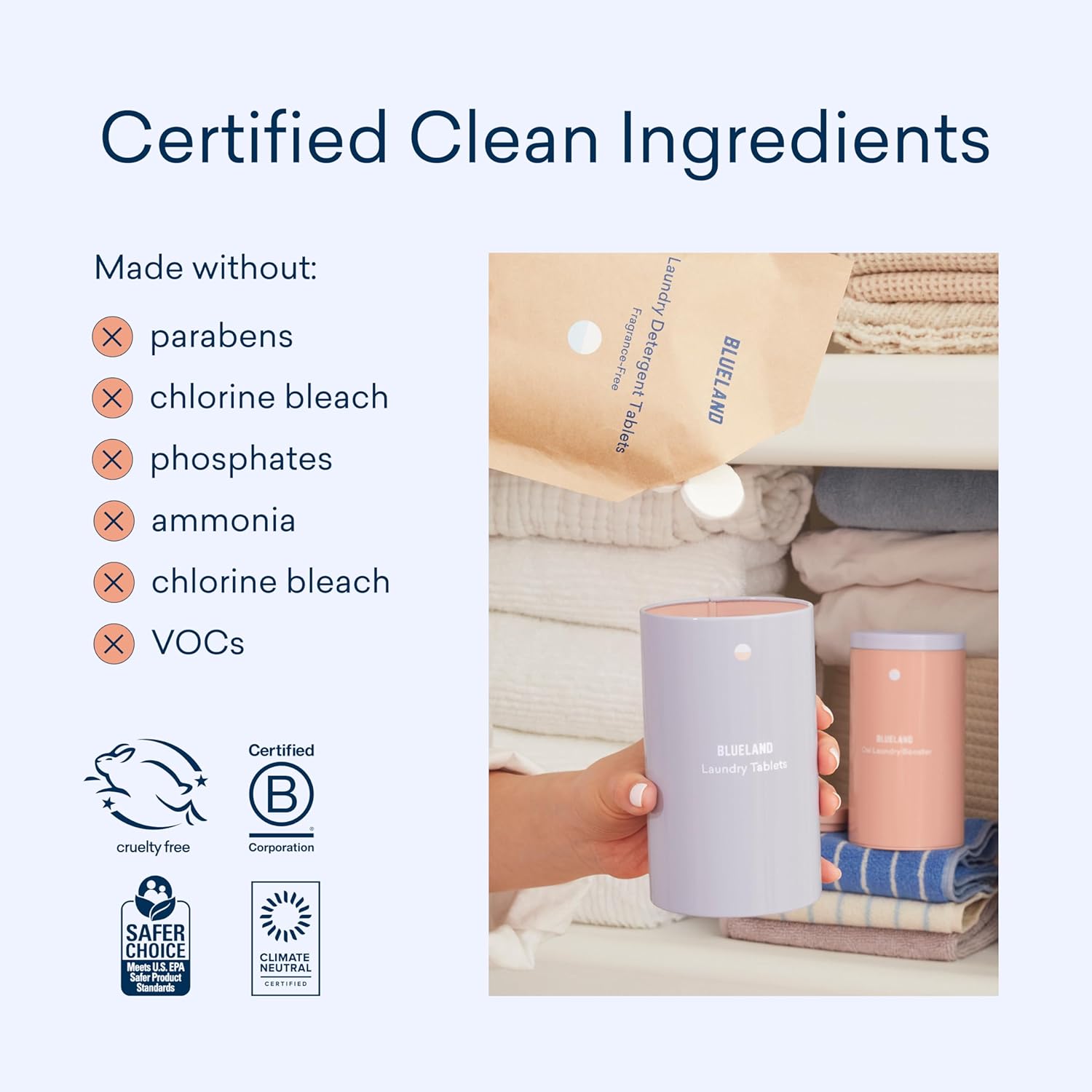 Plastic-Free, Eco-Friendly Laundry Tablets. The First And Only Plastic-Free Laundry Detergent Tablets That Are Tough On Stains, But Gentle On The Planet. Our 100% Plastic-Free Tablet Is Just As Easy As Any Detergent Pod, Without Any Of The Plastic Film (Pva) Found In Most Conventional Pods10Effective. Patented Detergent Tablet Powered By Enzymes Is Proven To Lift The Toughest Stains, From Grass And Coffee To Food And Makeup. Keeps Whites White And Colors Bright10Easy To Use: Drop One Tablet Directly Into The Drum Of The Washing Machine Before Adding Clothes (Or Two Tablets For Large Loads). Add Your Clothes And Select Your Cycle10Clean Ingredients. Hypoallergenic, Plant And Mineral Based Cleaning Power Free From Fragrance, Dyes, And Optical Brighteners10Safe For Kids And Pets. Epa Safer Choice, Leaping Bunny Cruelty-Free, Vegan, B Corp Certified, Climate Neutral, Usda Bio-Preferred10
