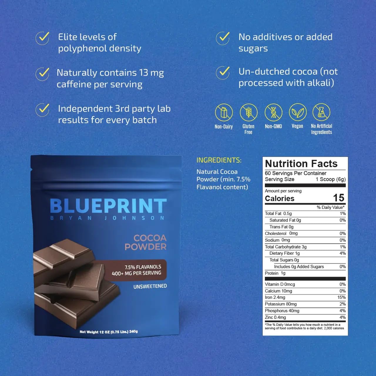 Rich In Flavanols: Elevate Your Health With Blueprint'S Elite Cocoa Powder Boasting Over 400 Mg Of Cocoa Flavanols Per Serving, Ensuring You Reap Maximum Nutritional Rewards With Every Indulgent Bite
