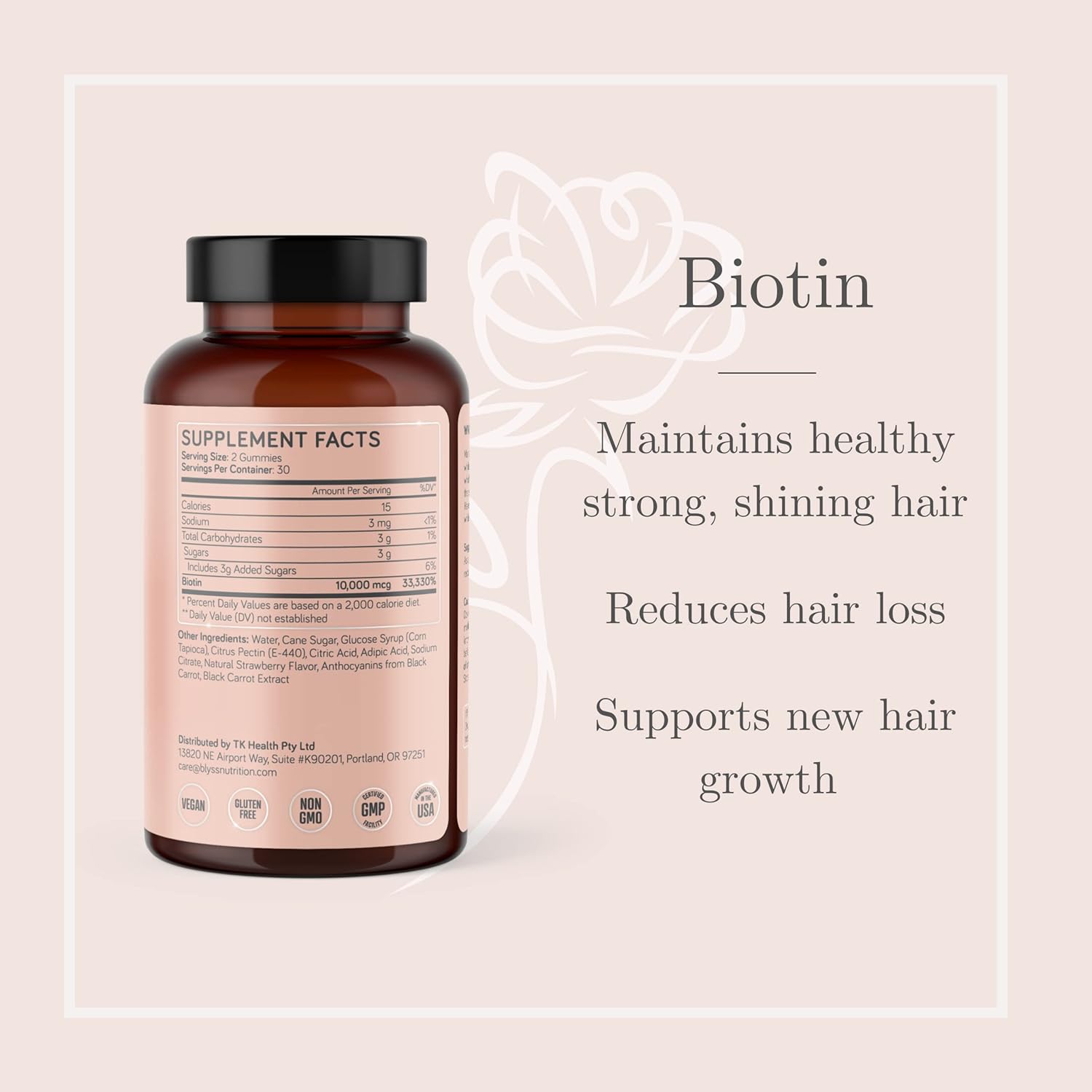 DESCRIPTION : BLYSS Nutrition Biotin 10000mcg Gummies - for Healthy Hair Skin and Nails Vitamins for Women with Vitamin B7 - Hair Growth Gummies with Biotin Vitamins - 100% Pure & Vegan Hair Skin & Nails Gummies