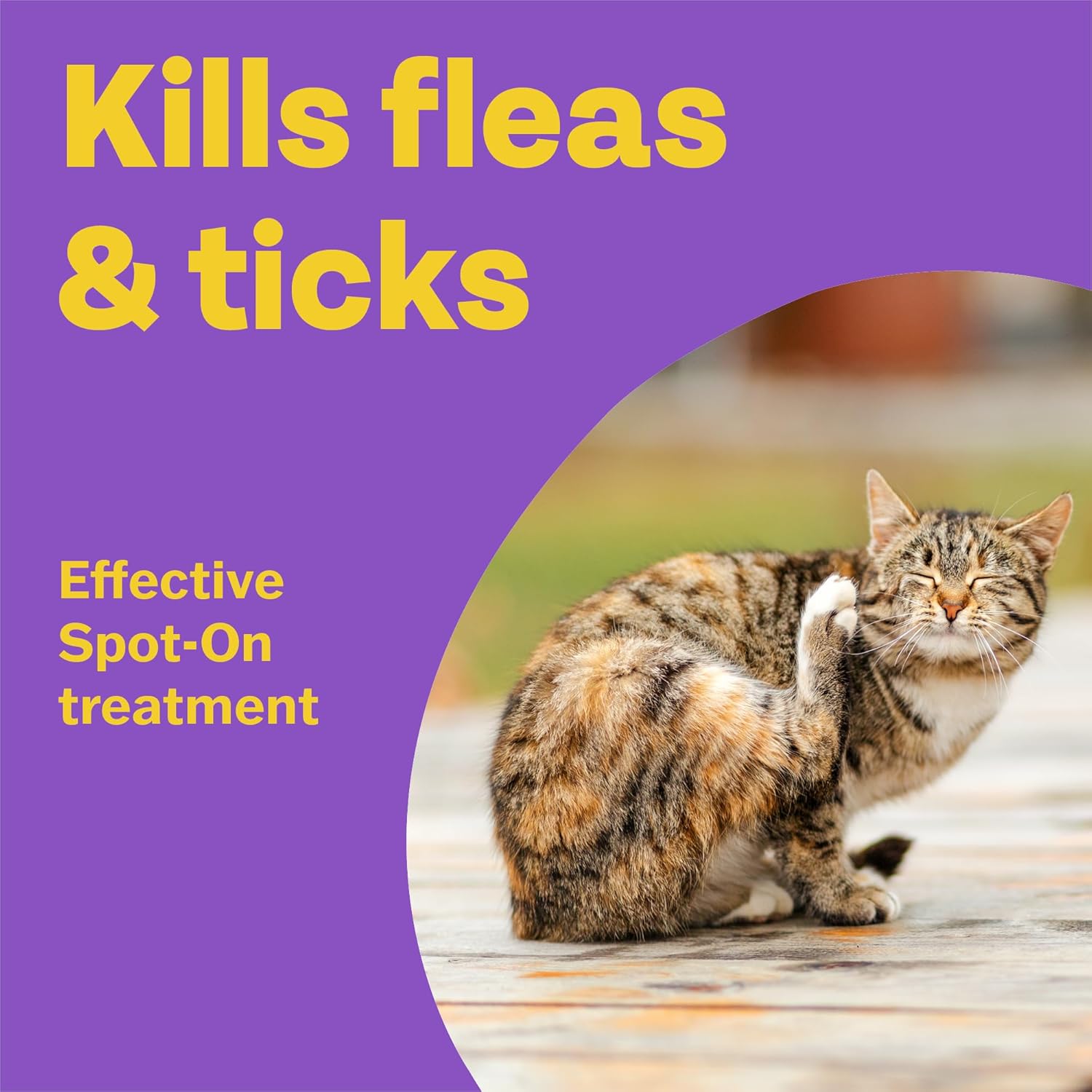 KILLS FLEAS & TICKS - Effective spot-on treatment, simply apply directly on your cats skin to kill fleas within 24 hours and ticks within 48 hours