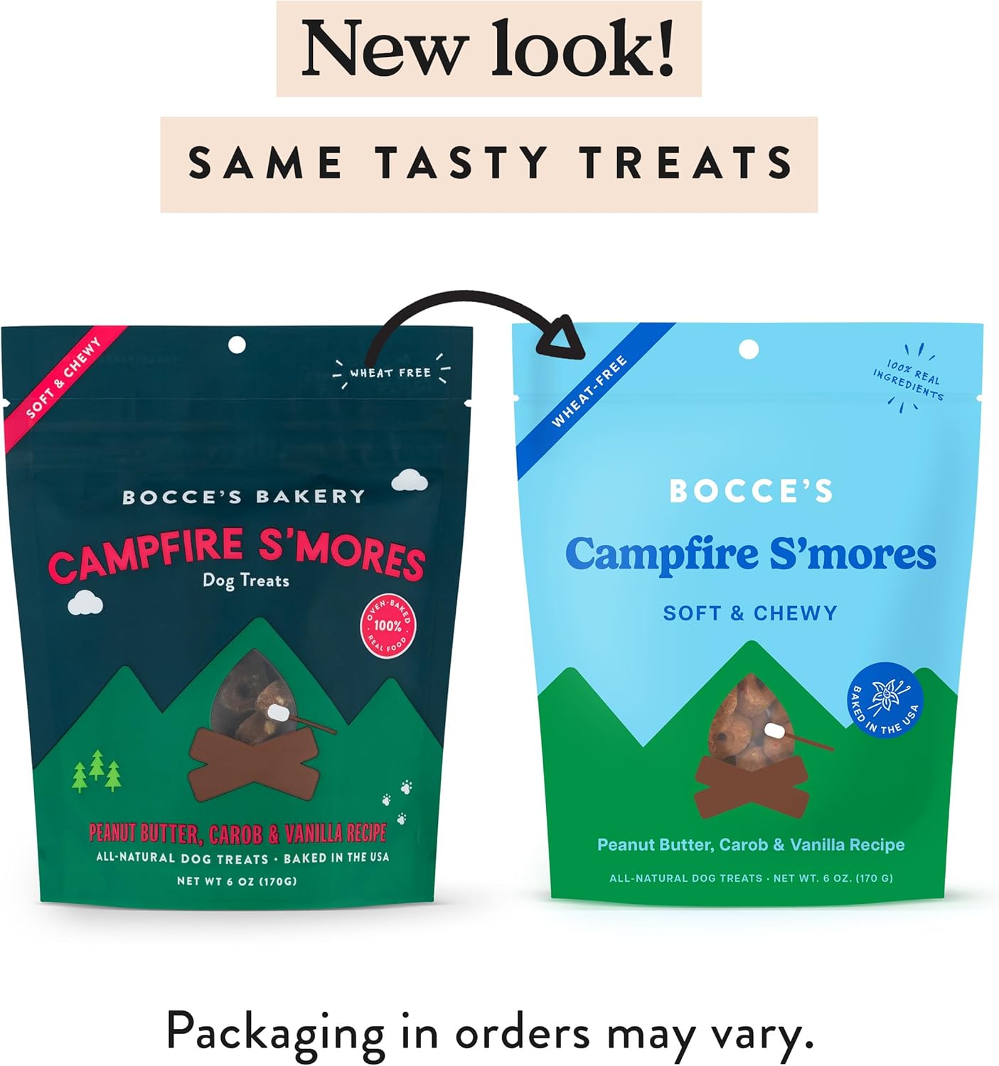 Bocce'S Bakery Campfire S'Mores Treats For Dogs, Wheat-Free Everyday Dog Treats, Made With Real Ingredients, Baked In The Usa, All-Natural Soft & Chewy Cookies, Peanut Butter, Carob, & Vanilla, 6 Oz