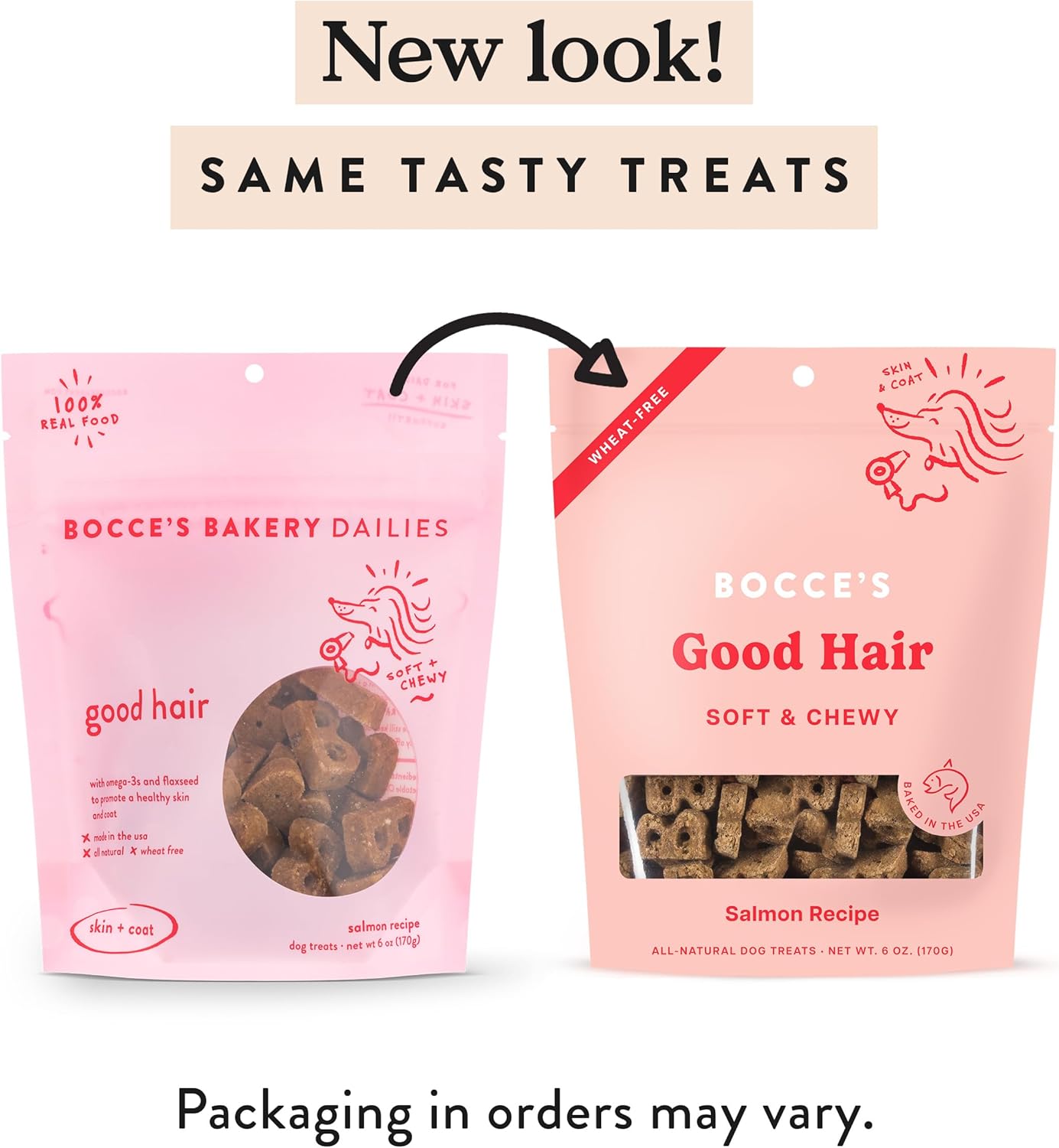 Bocce'S Bakery Dailies Good Hair Dog Treats For Skin & Coat Support, Wheat-Free Dog Treats, Made With Real Ingredients, Baked In The Usa, All-Natural Soft & Chewy, Salmon Recipe, 6 Oz