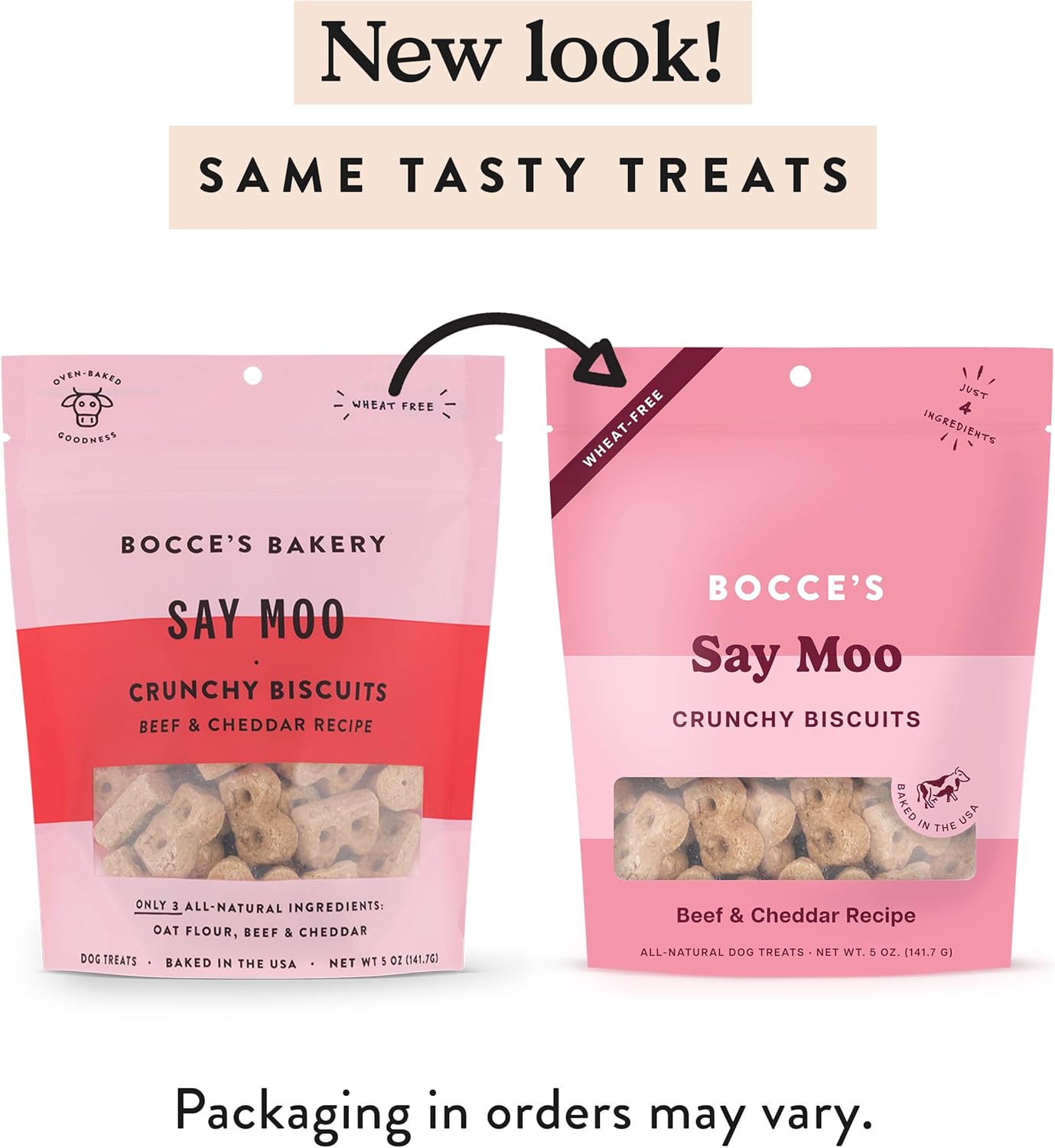 Bocce'S Bakery Oven Baked Say Moo Treats For Dogs, Everyday Wheat-Free Dog Treats, Made With Real Ingredients, Baked In The Usa, All-Natural Beef & Cheddar Biscuits, 5 Oz