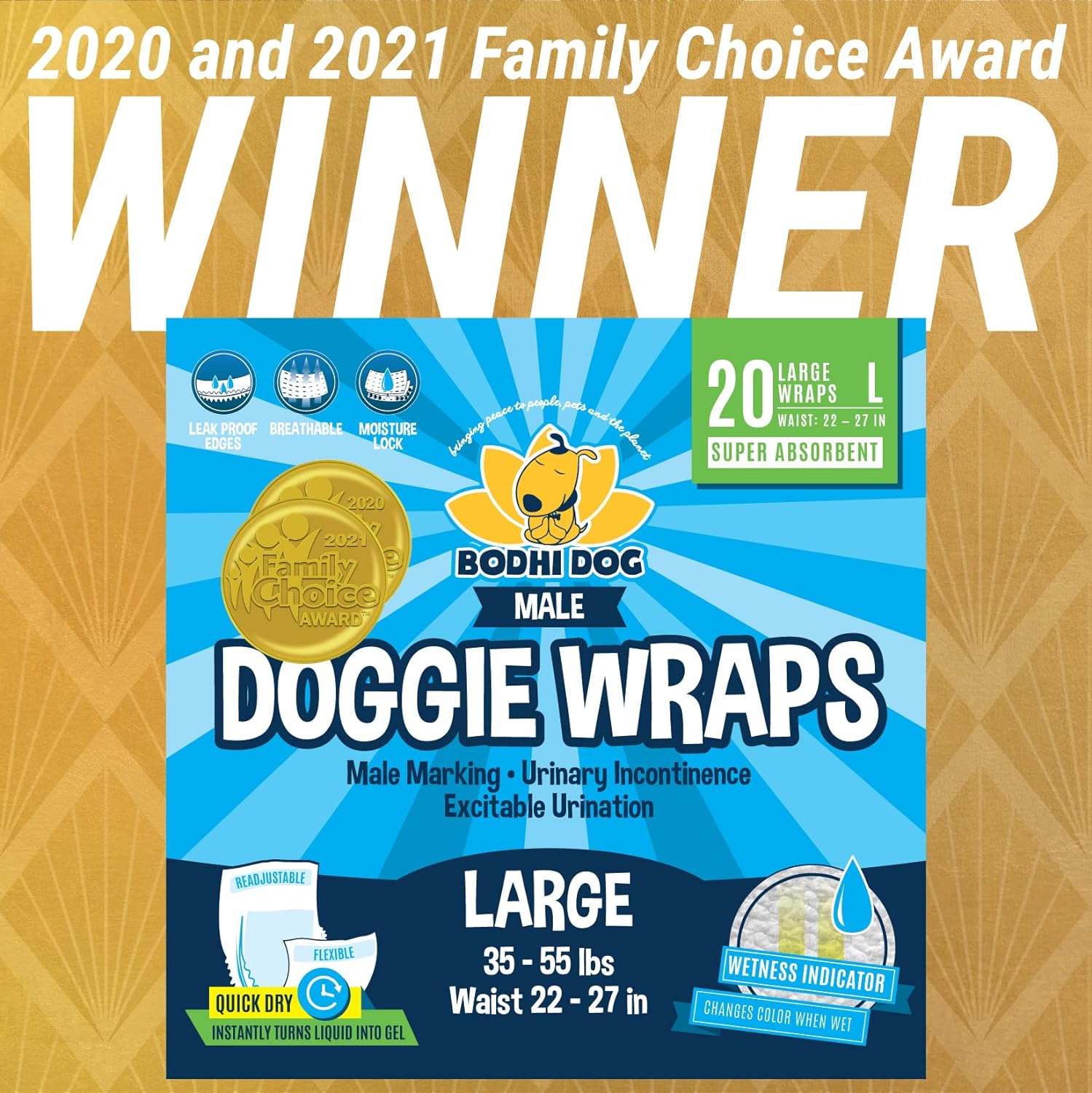 Bodhi Dog Disposable Male Dog Diapers | Super Absorbent Leak-Proof Fit | Premium Adjustable Male Dog Pee Wraps With Moisture Control & Wetness Indicator | 20 Count Large Size