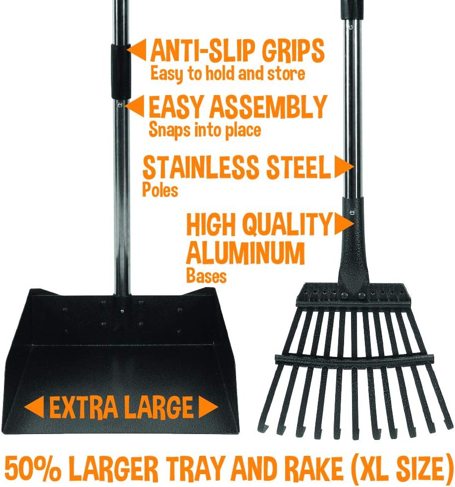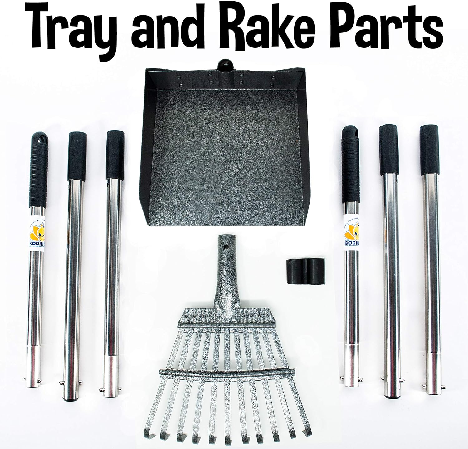 Bodhi Dog Metal Heavy Duty Dog Pooper Scooper For Large & Small Dogs - Stainless Steel Long Handle Dog Poop Scoop Metal Tray & Rake Set - Chicken Pooper Scooper - Great For Grass, Street, Gravel