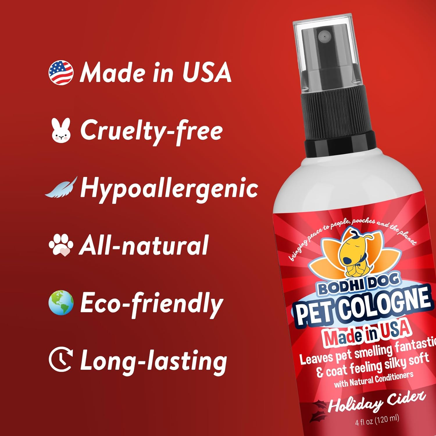 Bodhi Dog Natural Dog Cologne | Premium Scented Deodorizing Body Spray For Dogs & Cats | Neutralizes Strong Odors | Dog Perfume With Natural Dog Conditioner | Made In Usa (Holiday Cider, 4 Fl Oz)