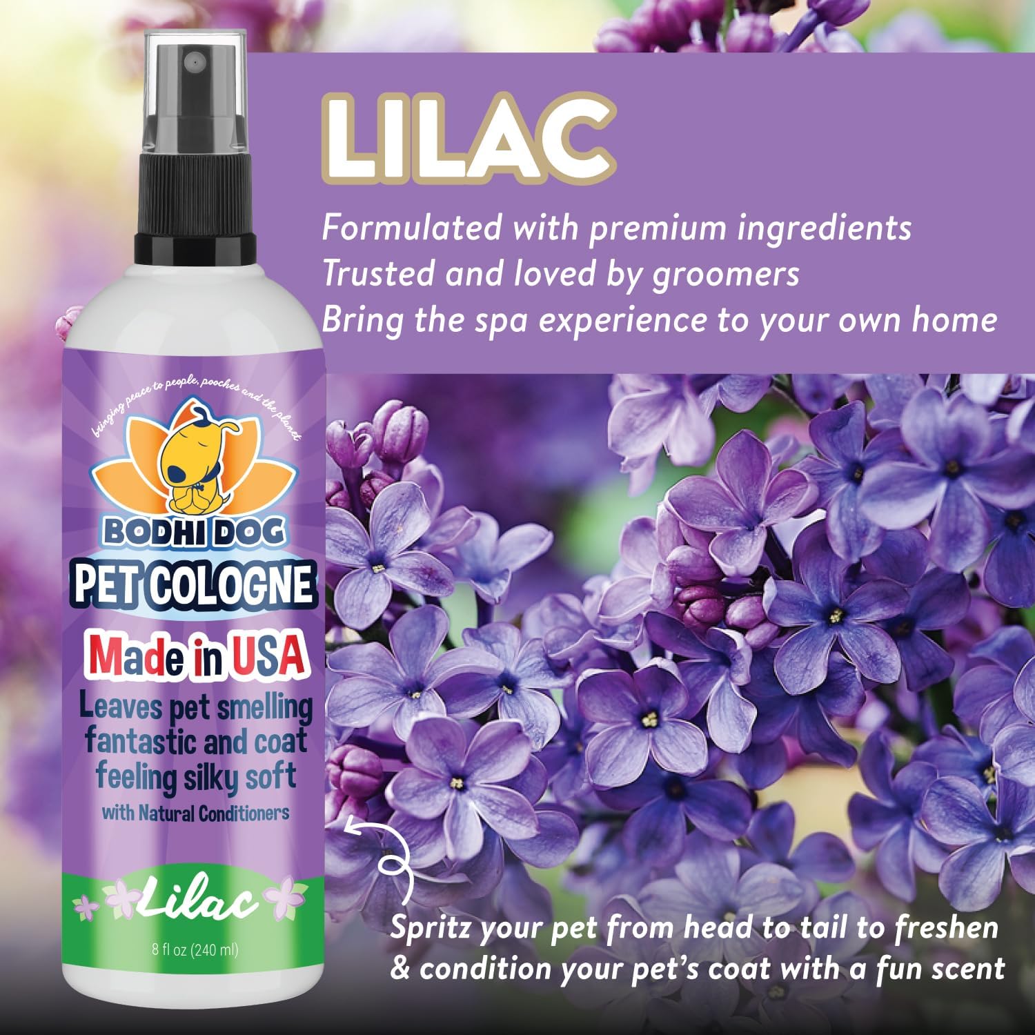 Bodhi Dog Natural Dog Cologne | Premium Scented Deodorizing Body Spray For Dogs & Cats | Neutralizes Strong Odors | Dog Perfume With Natural Dog Conditioner | Made In Usa (Lilac, 8 Fl Oz)