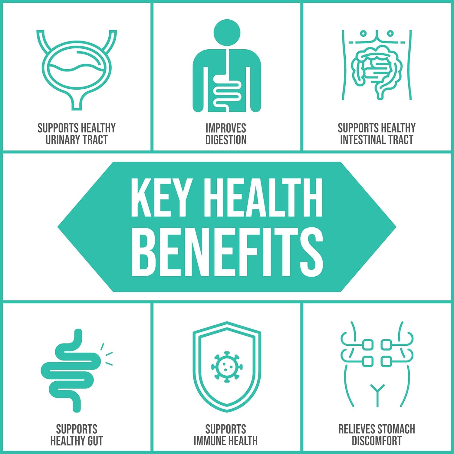 GUT SUPPORT Supports gut health and gut functions by supporting normal gut microbiota and the growth of beneficial bacteria in the gut, which naturally limits the growth of other harmful bacteria